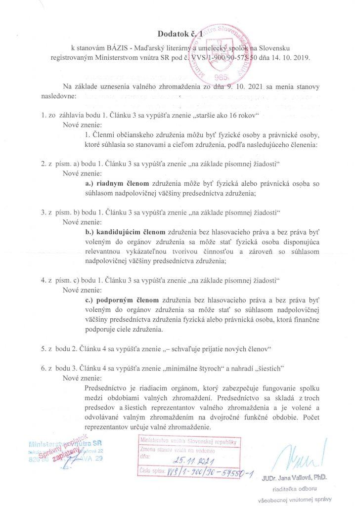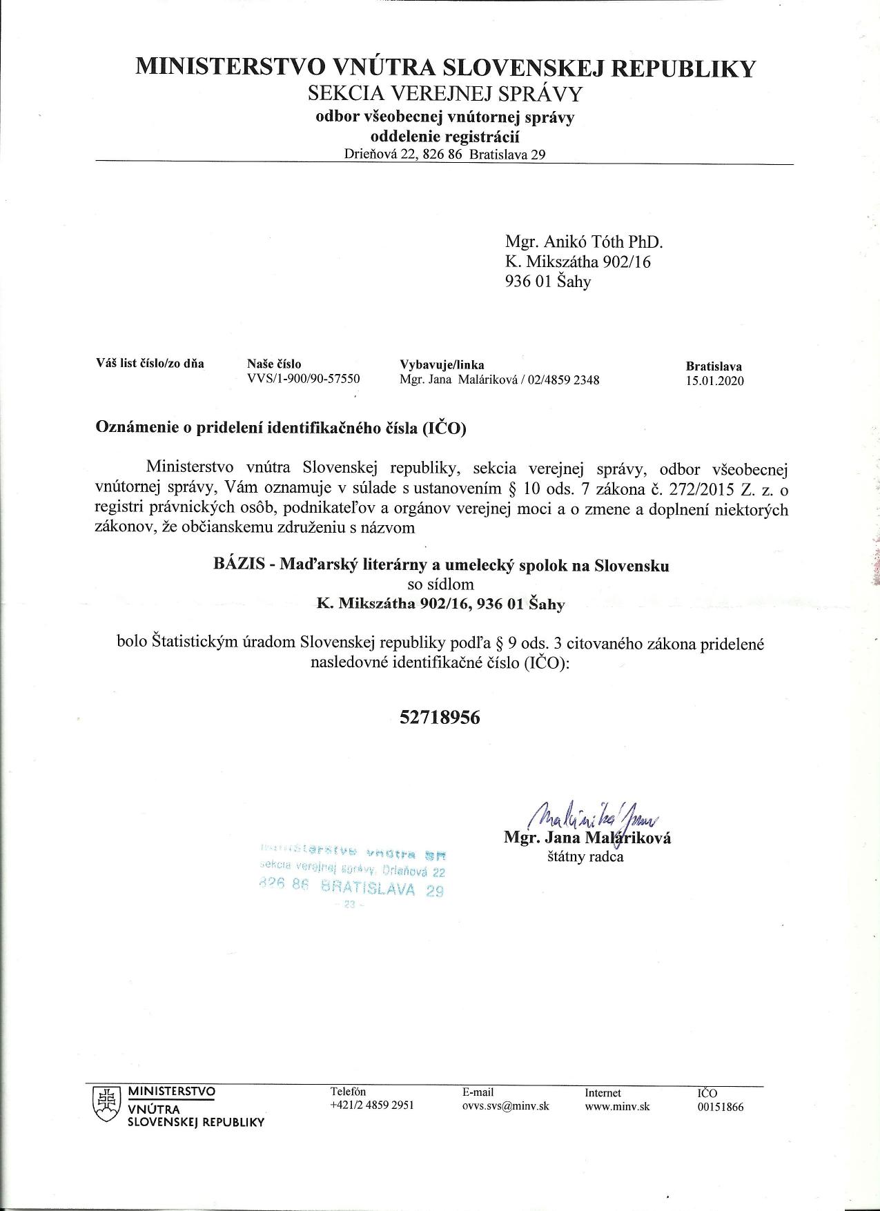Bázis – Hungarian Association of Literature and Arts in Slovakia is an association for autunomous, independent literature, art and science in Slovakia. Its members are connected to Slovakia and are committed to representing Hungarian literature and art in the broadest sense. The association is committed to the transmission of Hungarian literature to Slovak literature and of Slovak literature to Hungarian literature. It promotes academic and professional discource on contemporary and classical Hungarian and world literature, on artistic and philosophical literature, with special emphasison the works of Hungarian literature and art in Slovakia. It stimulates professional debates, organizes academic meetings, conferences, symposia, workshops, readings, literary and art festivals. Its activities are value-driven and based on discussions, aiming to promote the formulation of individual and group opinion. It is involved in shaping the processes of contemporary literature and literacy.
