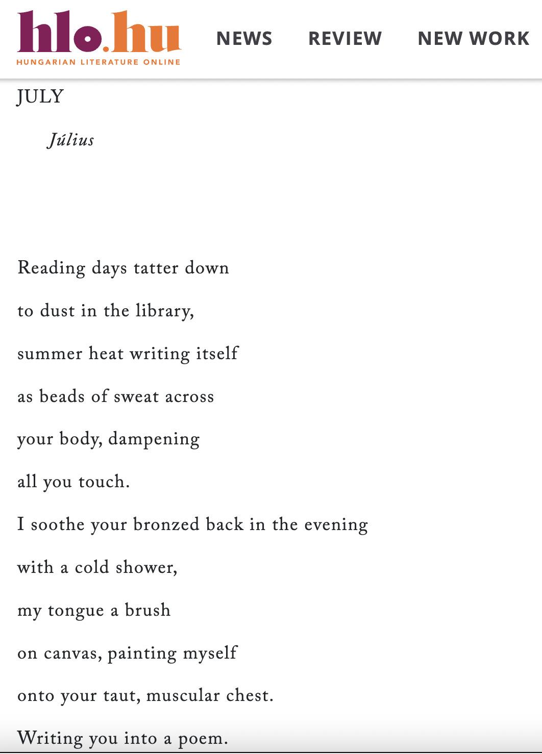 András Gerevich's two poems has been published in Andrew Fentham's translation on Hungarian Literature Online. The poems can be read on hlo.hu.