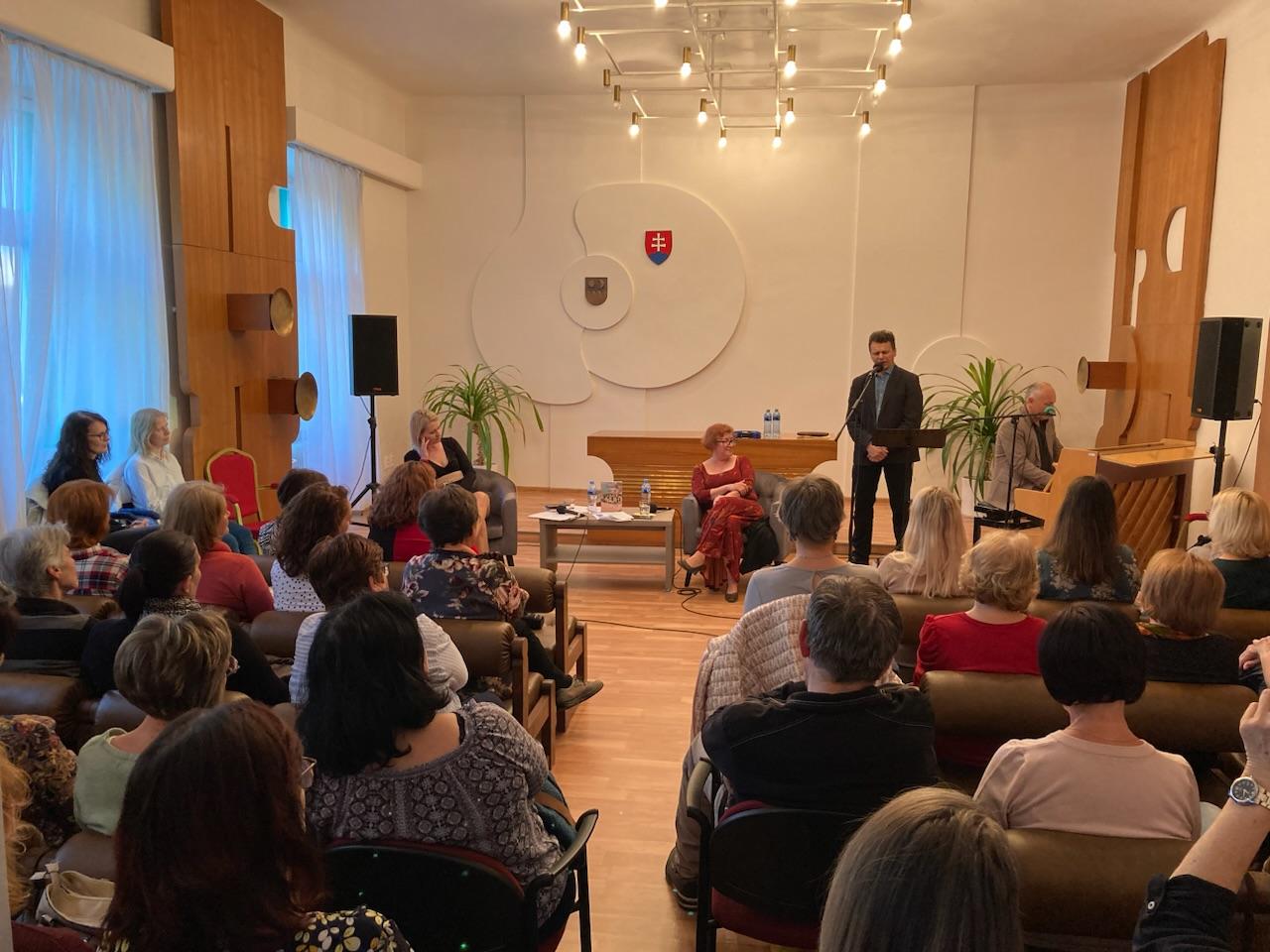 2024. április 25-én az ipolysági városháza szertartástermében került sor N. Tóth Anikó Tanárnő kérem c. kötetének bemutatójára. A szerzővel egykori tanítványa, a Szondy György Gimnázium tanára, Csáky Csinger Alexandra beszélgetett szép számú közönség előtt nemcsak a könyvről, hanem a tanár(nő)i lét rejtelmeiről, viszontagságairól, mélységeiről, magasságairól, ars poeticájáról. A könyvből részletek is elhangzottak a szerző, a moderátor és egy kolléga, Tóth Tibor jóvoltából. A rendezvényen Béres Anilla és Béres Gábor énekelt, zongorán közreműködött Torma Róbert. Fotó: Béres Anilla, Zsóka Szilárdka.