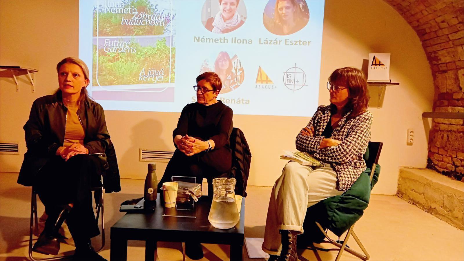 Mindig az a növény éli túl, aki alkalmazkodik, amelyik reziliens, nem pedig az, amelyik tűri a szárazságot - mondta el Németh Ilona képzőművész A jövő kertjei (Abacus+ Kiadó, 2025) című háromnyelvű könyvének bemutatóján az ISBN+ kortárs művészeti központ és szakkönyvesboltban. Szikra Renáta művészettörténész és kertszakértő izgalmas keresztkérdésekkel készült, Lázár Eszter kurátori szempontokat sorakoztatott fel, Németh Ilona pedig elmesélte, miért jött létre ez a projekt, és lesz-e folytatása. Lesz! A könyvről és a szerzőről további részletek olvashatóak az Abacus+ Kiadó weboldalán, ahol a kötet meg is vásárolható. A könyvbemutatóról élményfotók készültek.