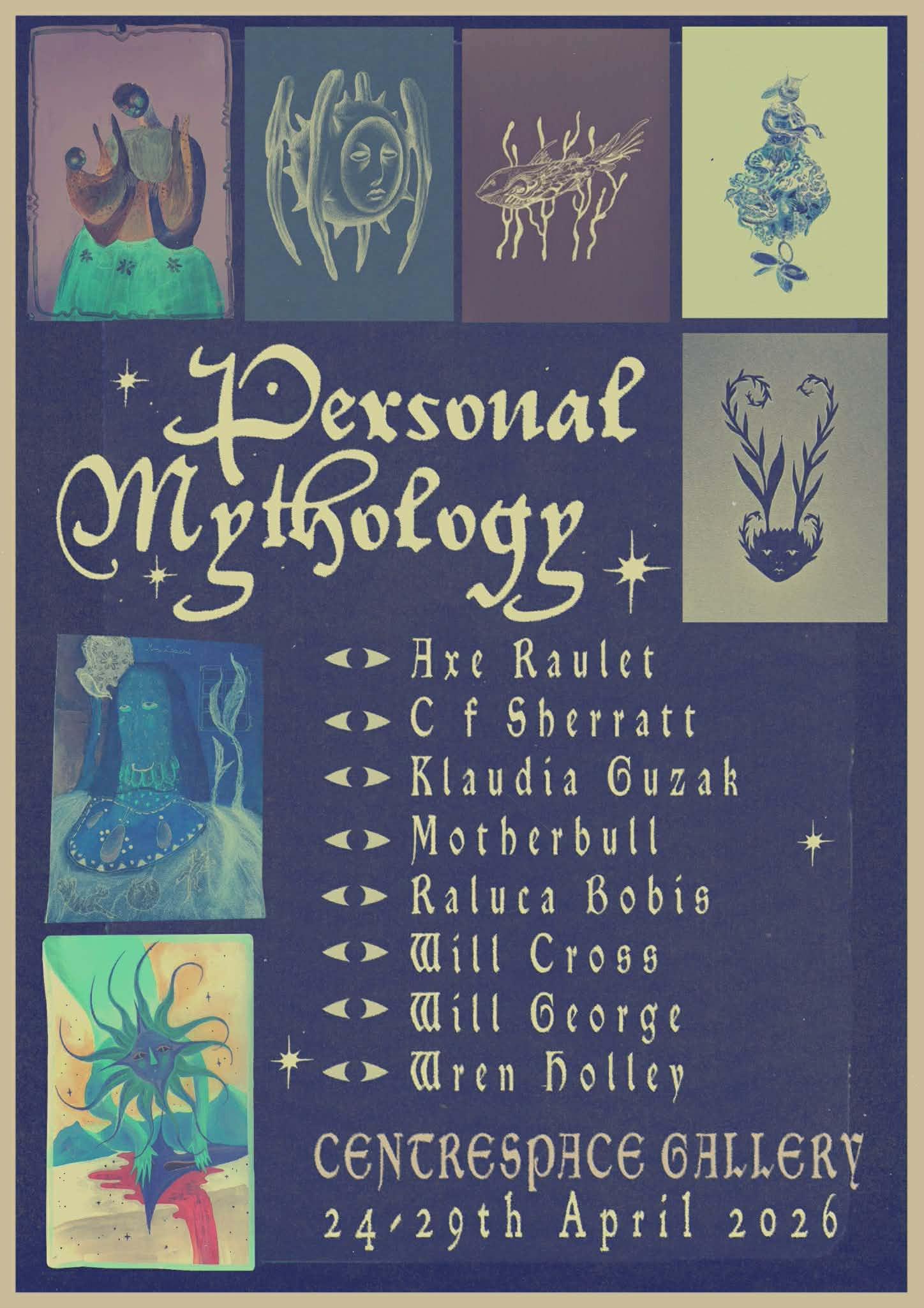 Magán Mitológiák (Personal Mythology) címmel csoportos kiállítás nyílt 2026. április 24-én a bristoli Centrespace galériában. A kiállításon különböző stílusban alkotó fiatal művészek alkotásait az egyedi perspektívákból sarjadó mitológiateremtés formálja egy nagy kiállítássá. A folklórtól a pszichedelikus világokon át a bestiáriumig, a textilhasználattól a kollázson át a bábozásig: a Magán Mitológiáknak semmi sem szab határt. De valahol talán erről is szól a mitológiateremtés, folyamatos határalakításokról az egyes világokon át és azokon belül egyéni viszonyrendszereket teremtve. A kiállításon többek közt Gužák Avarka Klaudia és Hizsnyai András alkotásai is megtekinthetők.