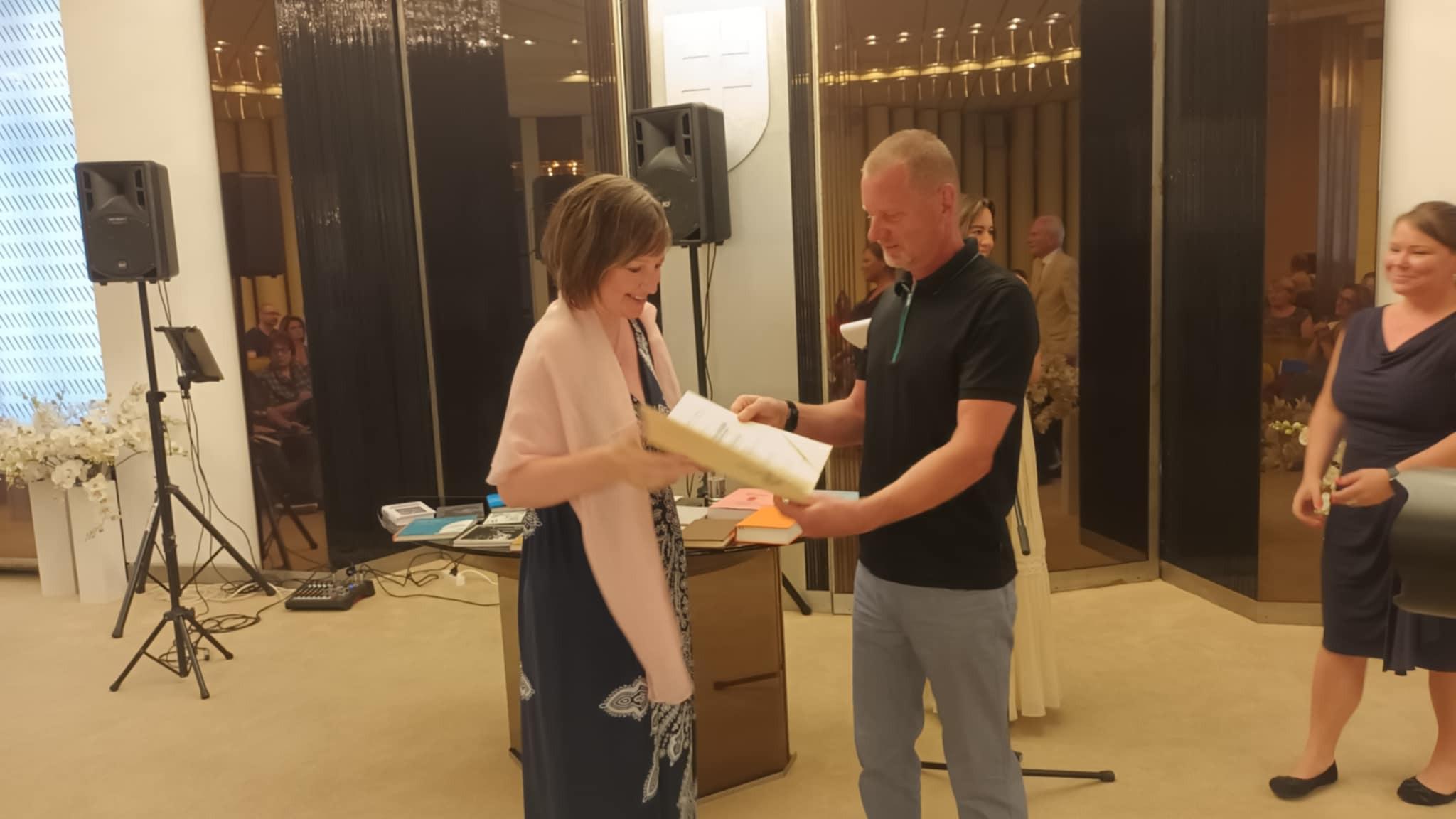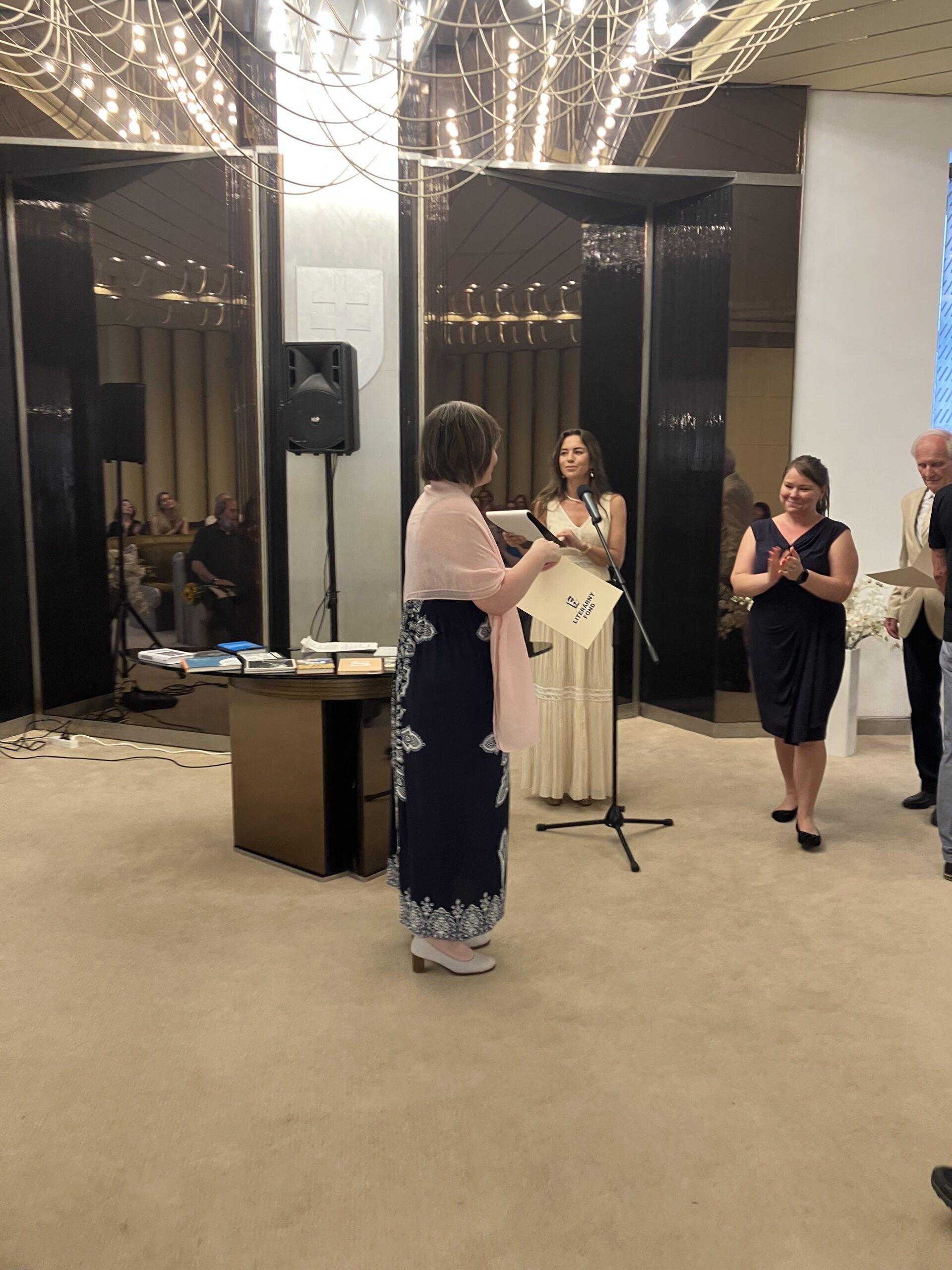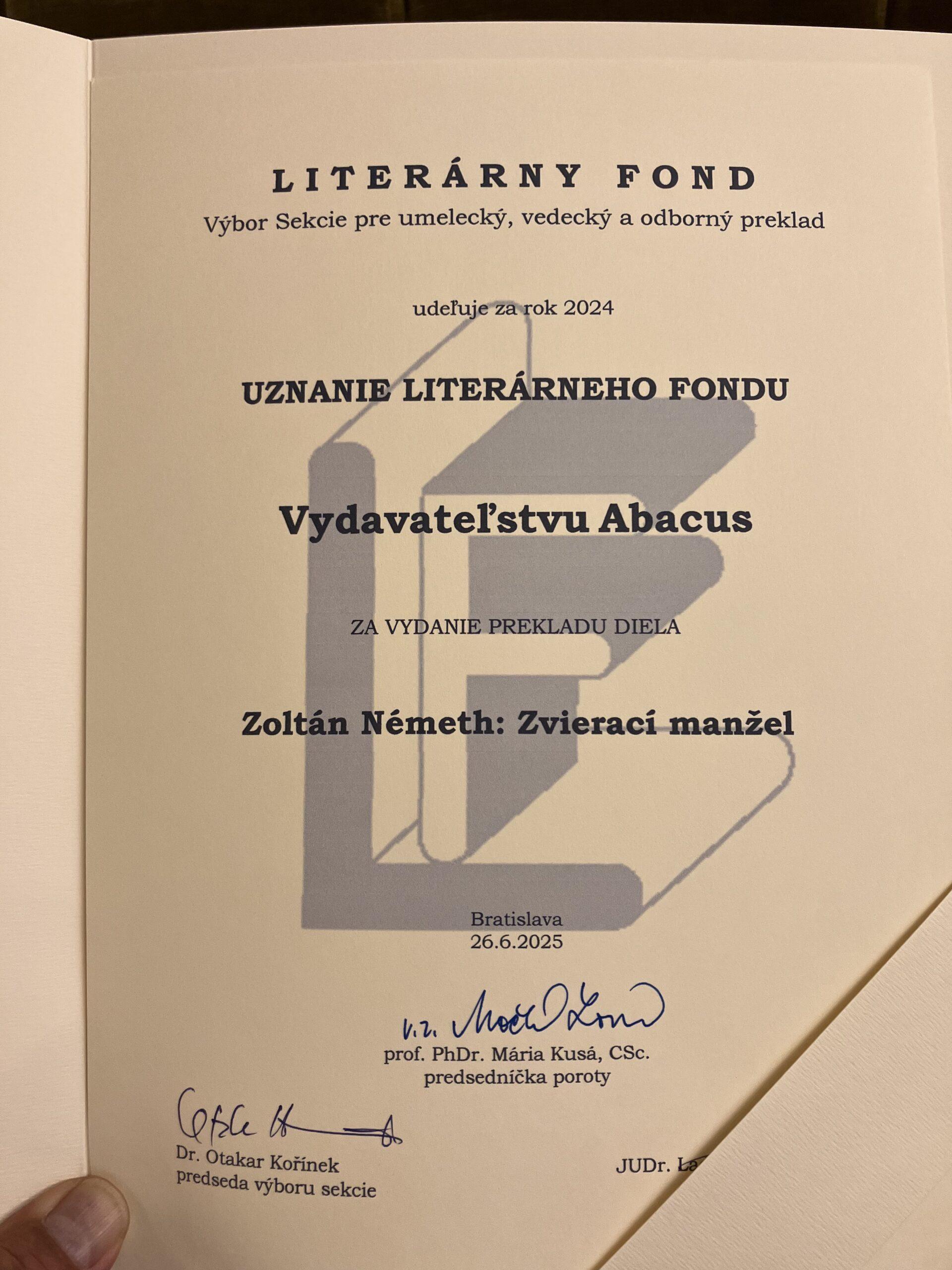 Jitka Rožňová získala prémiu Literárneho fondu, ktorú vyberá porota Ceny Jána Hollého, za slovenský preklad básnickej zbierky Zvierací manžel (Állati férj) (Abacus+, 2024) od Zoltána Németha! Slávnostné odovzdávanie cien sa konalo 26. júna 2025 v Zichyho paláci v Bratislave v rámci podujatia Literárneho fondu. Blahoželáme Jitke Rožňovej a Zoltánovi Némethovi, členom Bázis! Fotografie: Katalin Juhász, Rokko Juhász.