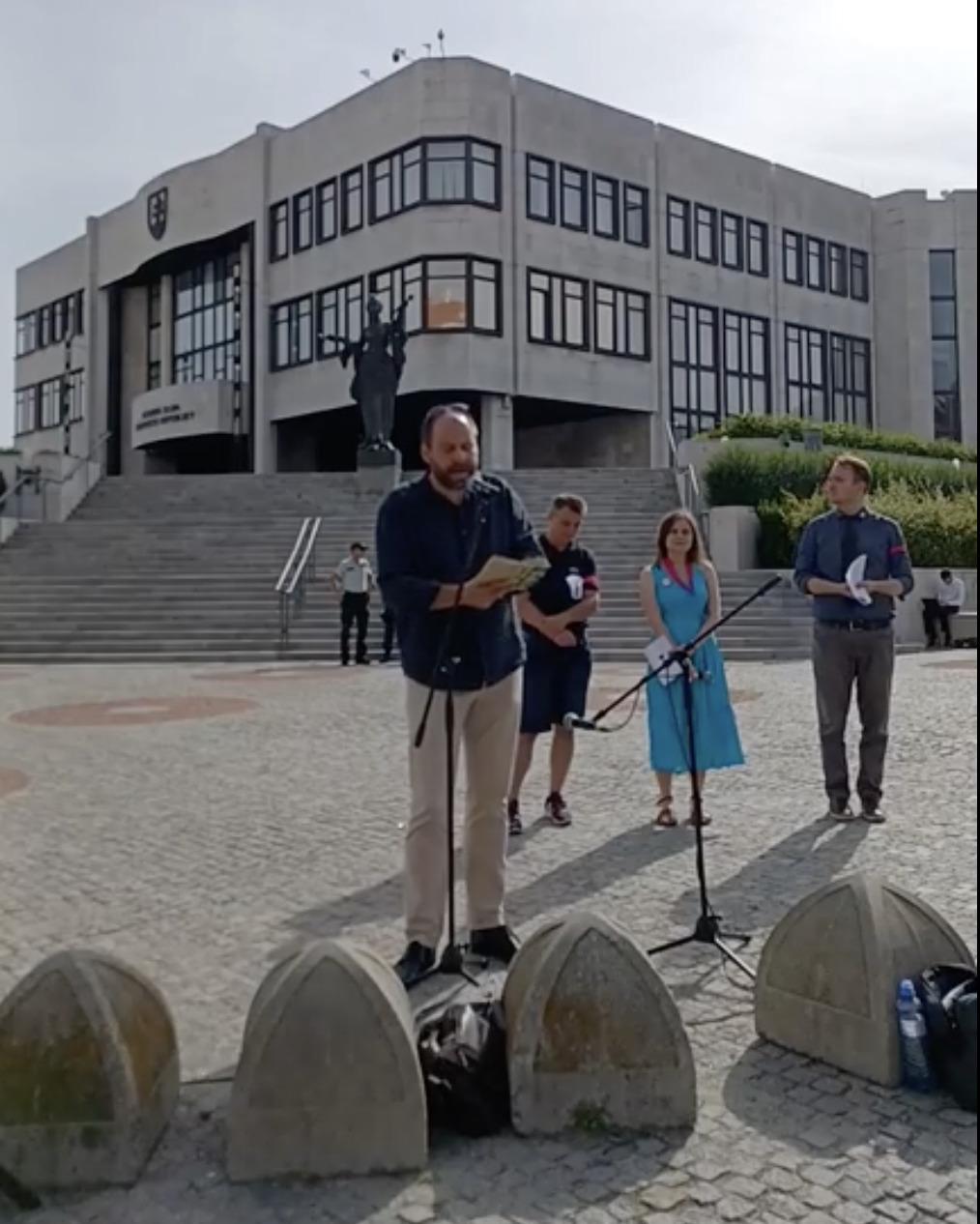 László Jakubecz na proteste zamestnancov RTVS recituje báseň Attilu Józsefa: