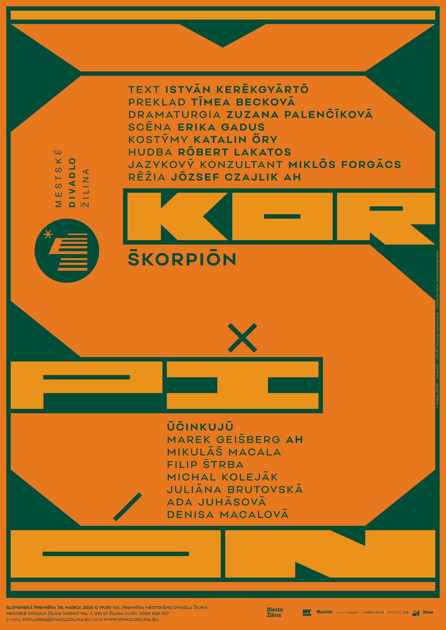 V Mestskom divadle Žilina bude premiéra divadelnej hry Istvána Kerékgyártóa Škorpión v preklade Tímey Beck 28. marca 2026 o 19.00. Jazykový konzultant: Miklós Forgács. Podrobnosti na Facebooku: