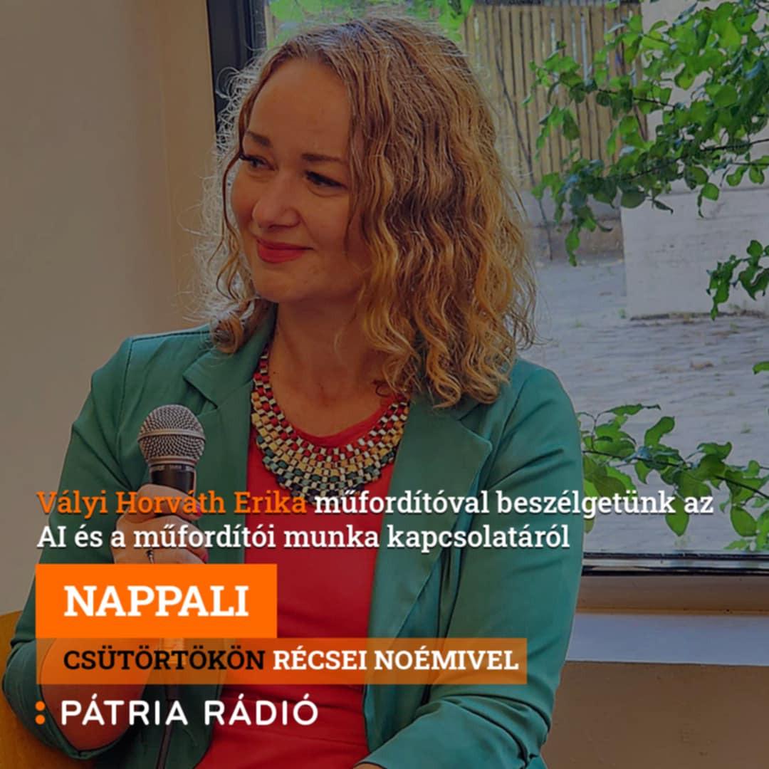Vályi Horváth Erikával a mesterséges intelligencia és a műfordítás kapcsolatáról Récsei Noémi beszélget a Pátria Rádióban 2026. február 5-én, csütörtökön a 10.00-s hírek után. A beszélgetés az adás ideje alatt online is hallgatható: https://patria.stvr.sk/player.