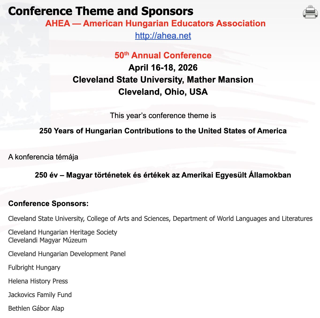 250 év – Magyar történetek és értékek az Amerikai Egyesült Államokban. Visy Beatrix és Szolláth Dávid is előadást tartott a Clevelandi Állami Egyetemen az AHEA — Amerikai Magyar Pedagógusok Szövetsége jubileumi, 50. konferenciáján. Bővebb információk és teljes program az AHEA honlapján: https://ahea.net/conferences/2026-cleveland-state-university/conference-theme-and-sponsors.