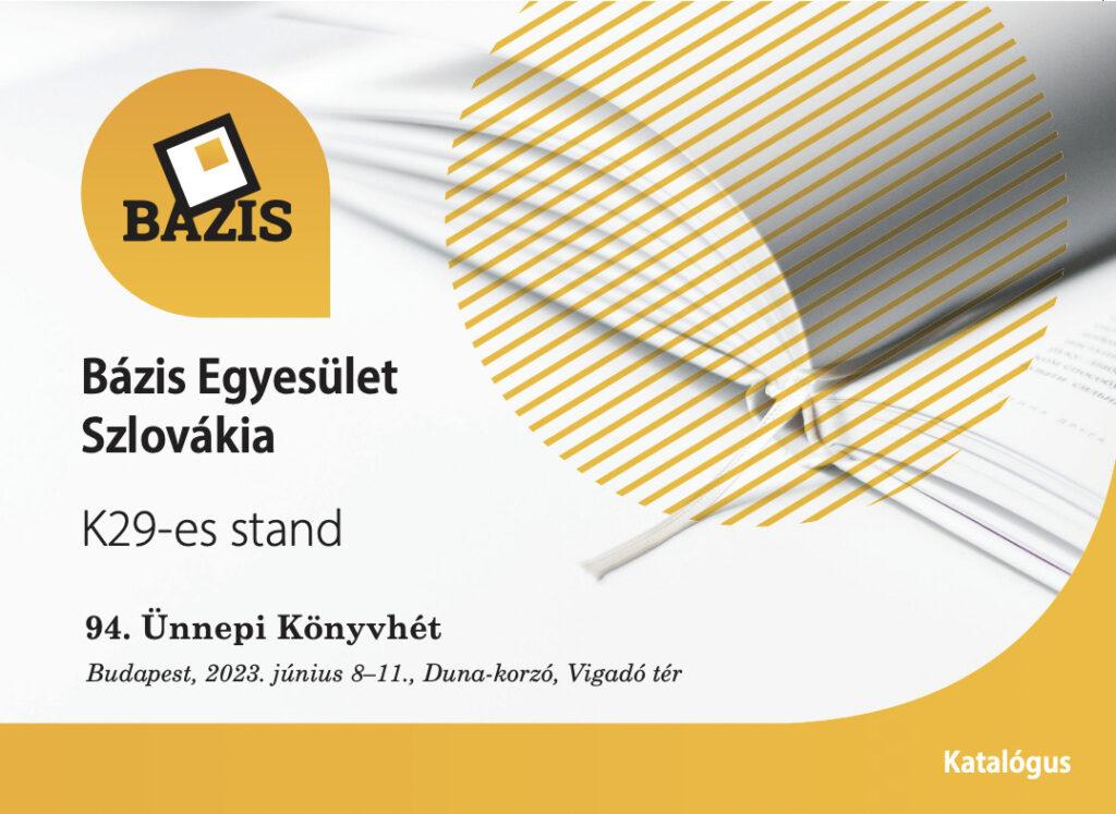 A Bázis önálló standdal és több programmal vesz részt a 94. Budapesti Könyvhéten 2023. június 8-11. között. A katalógus borítójából a dedikálások és a programok pontos időpontjai, a katalógusból pedig a dedikáló szerzők és köteteik adatai tölthetők le. Az eseményt a Kisebbségi Kulturális Alap támogatja.
