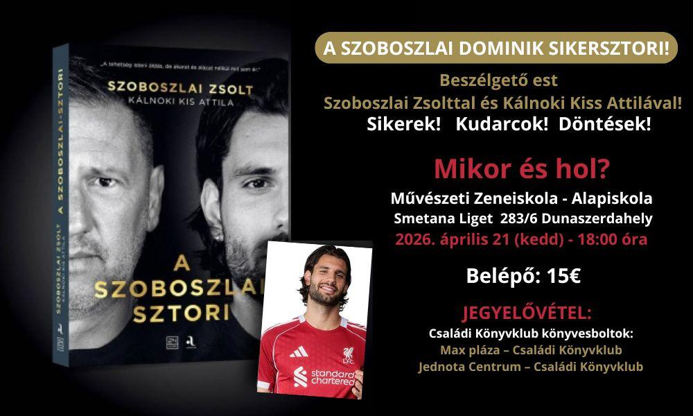 A Szoboszlai-sztori. Győry Attila beszélget Szoboszlai Zsolttal és Kálnoki Kiss Attilával Dunaszerdahelyen 2026. április 21-én. Részletek:
