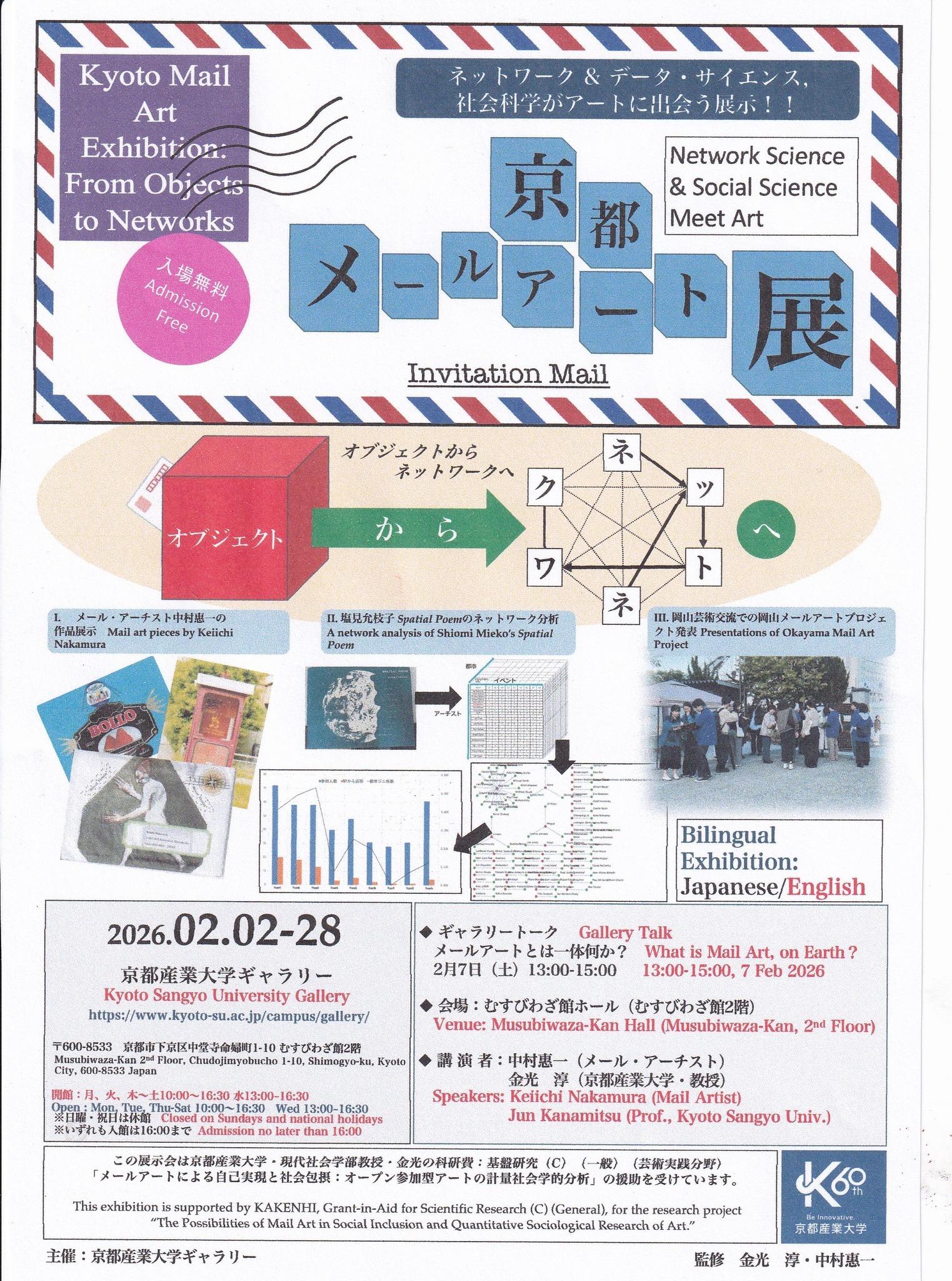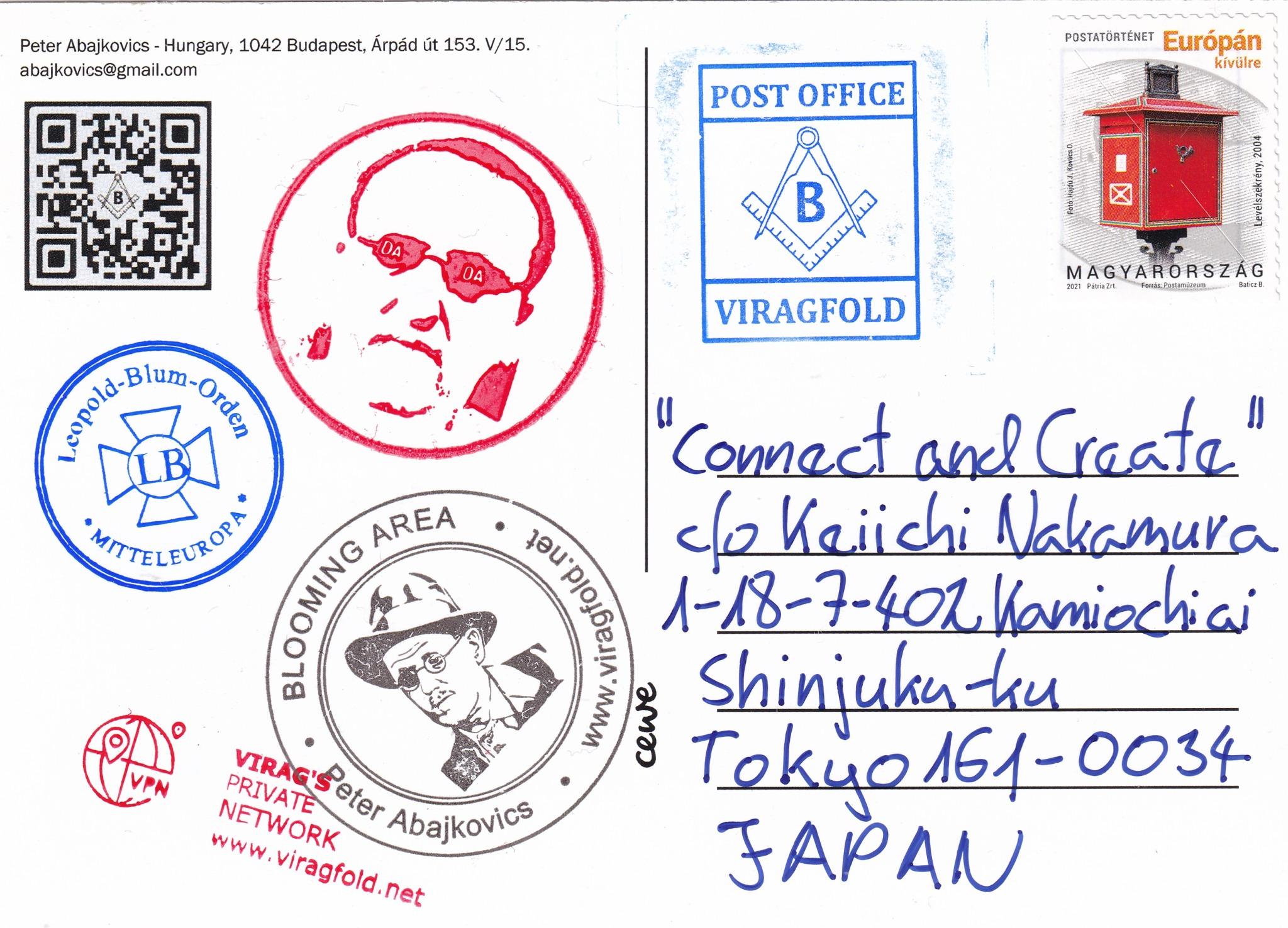 "34 országból 189 művész 330 alkotása szerepel a február 2-án nyíló kiállításon. A helyszín, a Kyoto Sangyo Egyetem Galériája körülbelül 700 művet fog bemutatni, beleértve az 1990-es évekből származó archívumbeli darabokat is. A kiállítás körülbelül egy hónapig lesz látható. Küldött munkámmal a kreatív, szellemi, ha úgy tetszik szubjektív hálózatok előtt tisztelgek, melyek számomra messze fontosabbak a formális, hatalmi vagy épp piaci determináltságú kapcsolódásoknál. Ha februárban Kyoto-ban jársz, feltétlenül nézd meg a projektet."