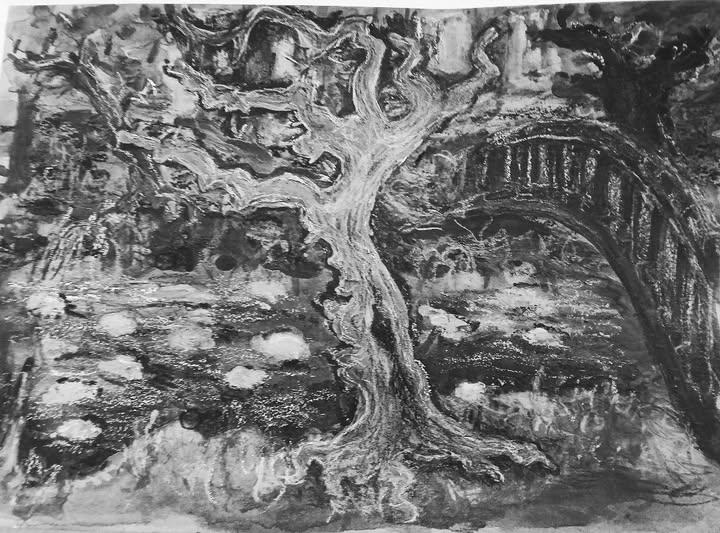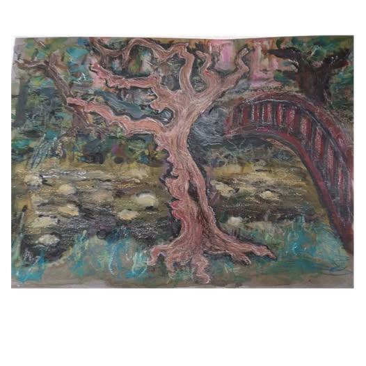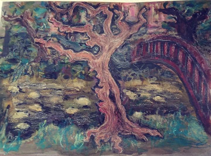 A kép mélyzöldjei barackrózsaszín fatörzset követeltek. ‘Te hülye vagy?’ – kérdeztem magamtól, de éreztem, hogy mégis ez a jó. A csoport végül bólintott: megint megcsináltad.