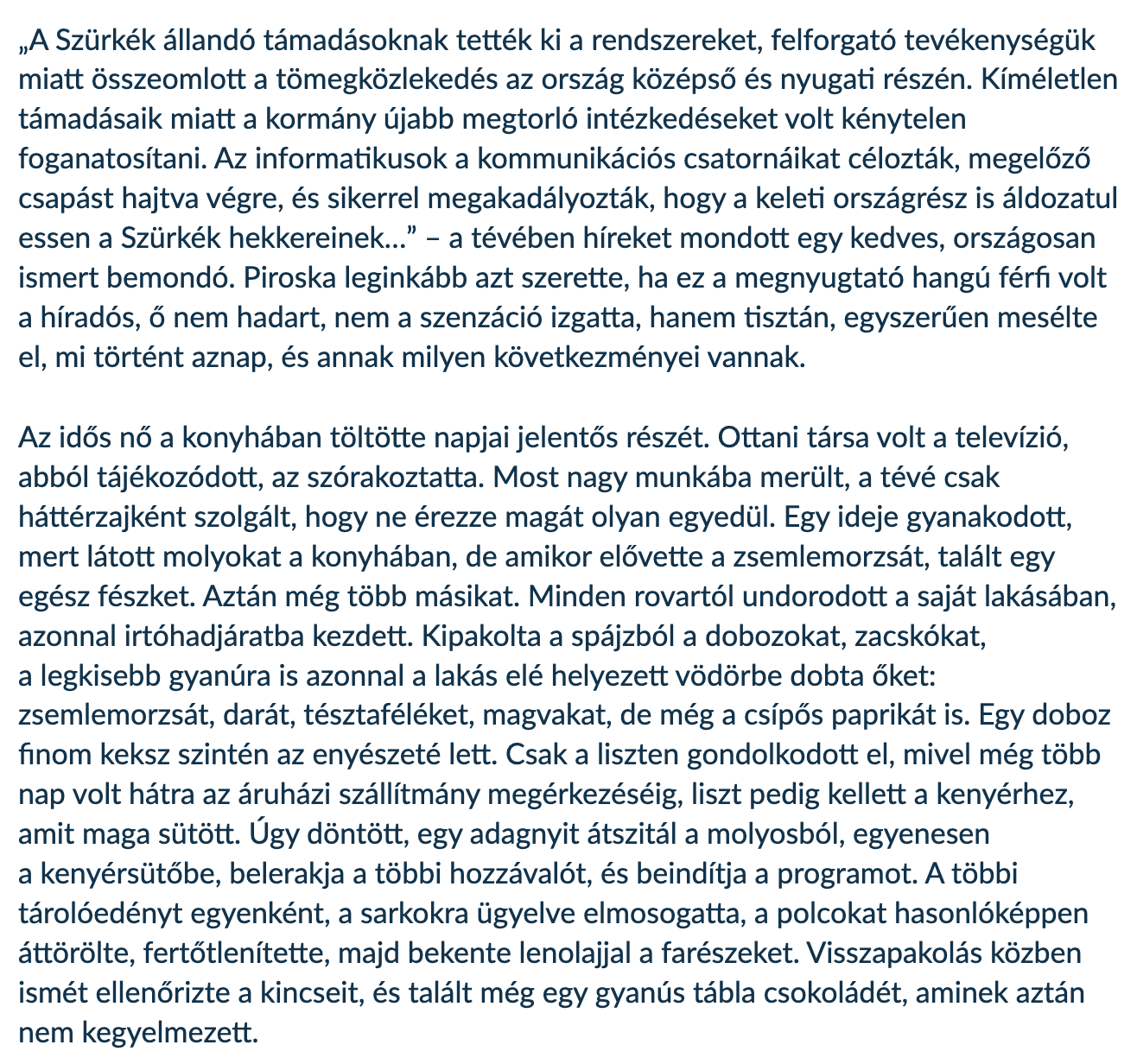 Balogh Endre Piroska és a Szürke (Semmitérő történetek) című tárcája az Új Szó kulturális mellékletében, a Szalonban jelent meg. Teljes terjedelemben az Új Szó online felületén olvasható.