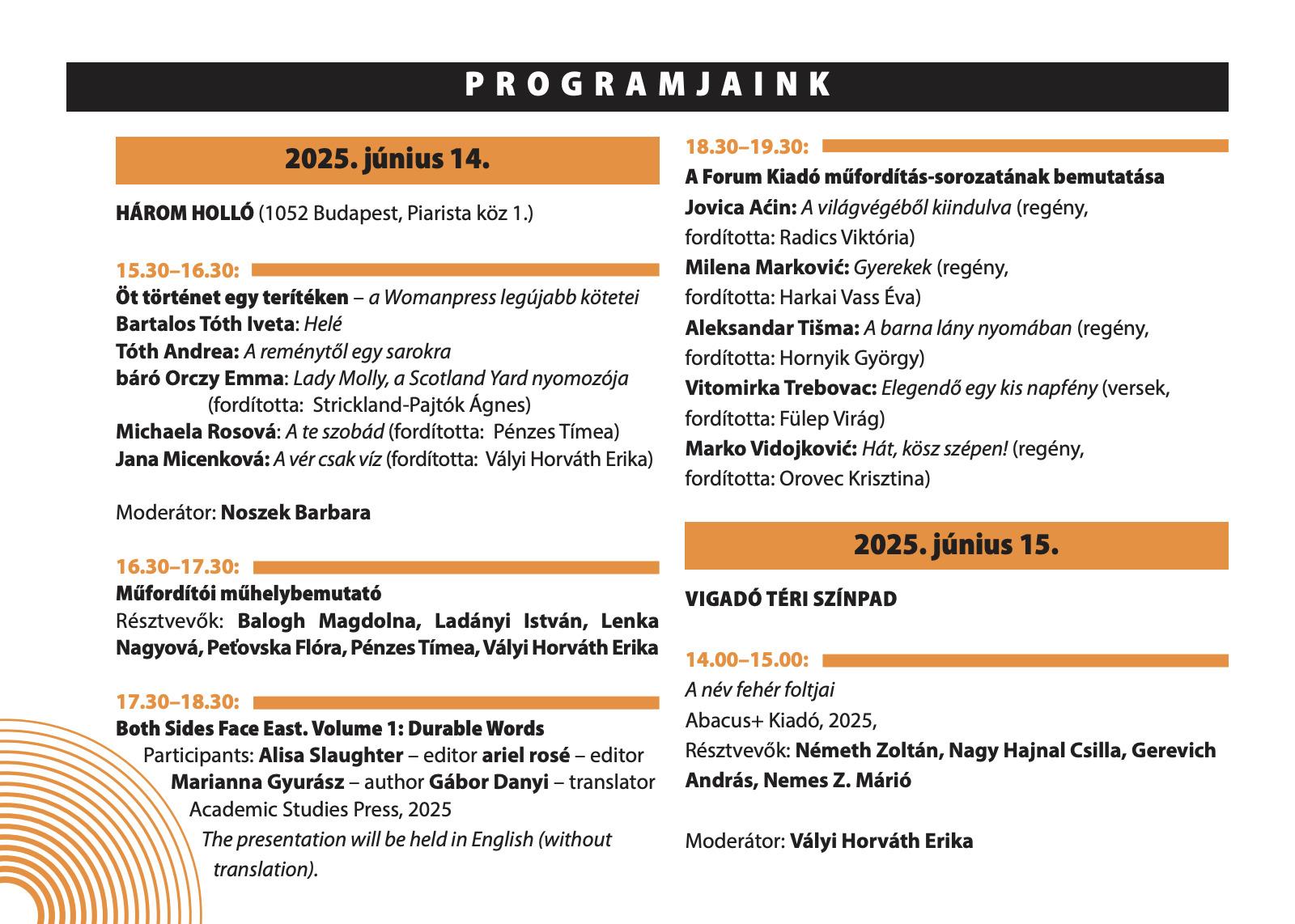 Kiegészítő program: 2025. június 15., vasárnap, 11.00-12.00: A Transzkulturalizmus és bilingvizmus 6. / Csehy Zoltán 50 című konferenciakötet szerzői dedikálnak.