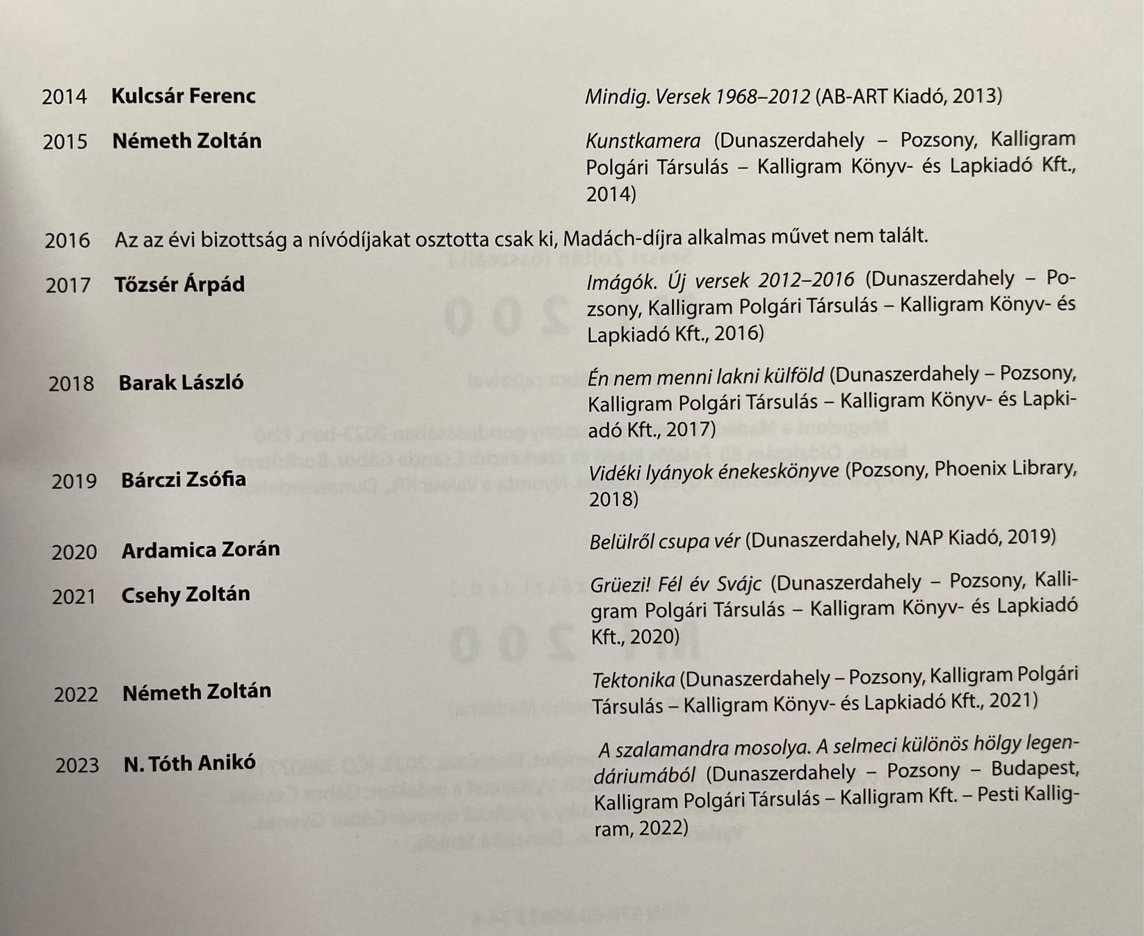Bázis-tagok is szerepelnek a Szászi Zoltán által összeállított MI 200 antológiában, amely a pozsonyi Madách Egyesület kiadásában jelent meg. Összeállította és az előszót írta: Szászi Zoltán. Felelős kiadó és szerkesztő: Csanda Gábor. Borítóterv, nyomdai előkészítés és illusztráció: Gyenes Gábor. Az antológia Madách-díjas szerzői: Ardamica Zorán, Balla Kálmán, Barak László, Bárczi Zsófia, Csehy Zoltán, Hizsnyai Zoltán, Németh Zoltán, N. Tóth Anikó, Polgár Anikó, Tőzsér Árpád, Vida Gergely. A kötet tartalmazza Gyenes Gábor Az ember tragédiája című kiállításának Szalay Zoltán által írt megnyitószövegét, valamint az 1989-2023 közötti Madách Imre-díjasok listáját és a díjazott művek címét is.