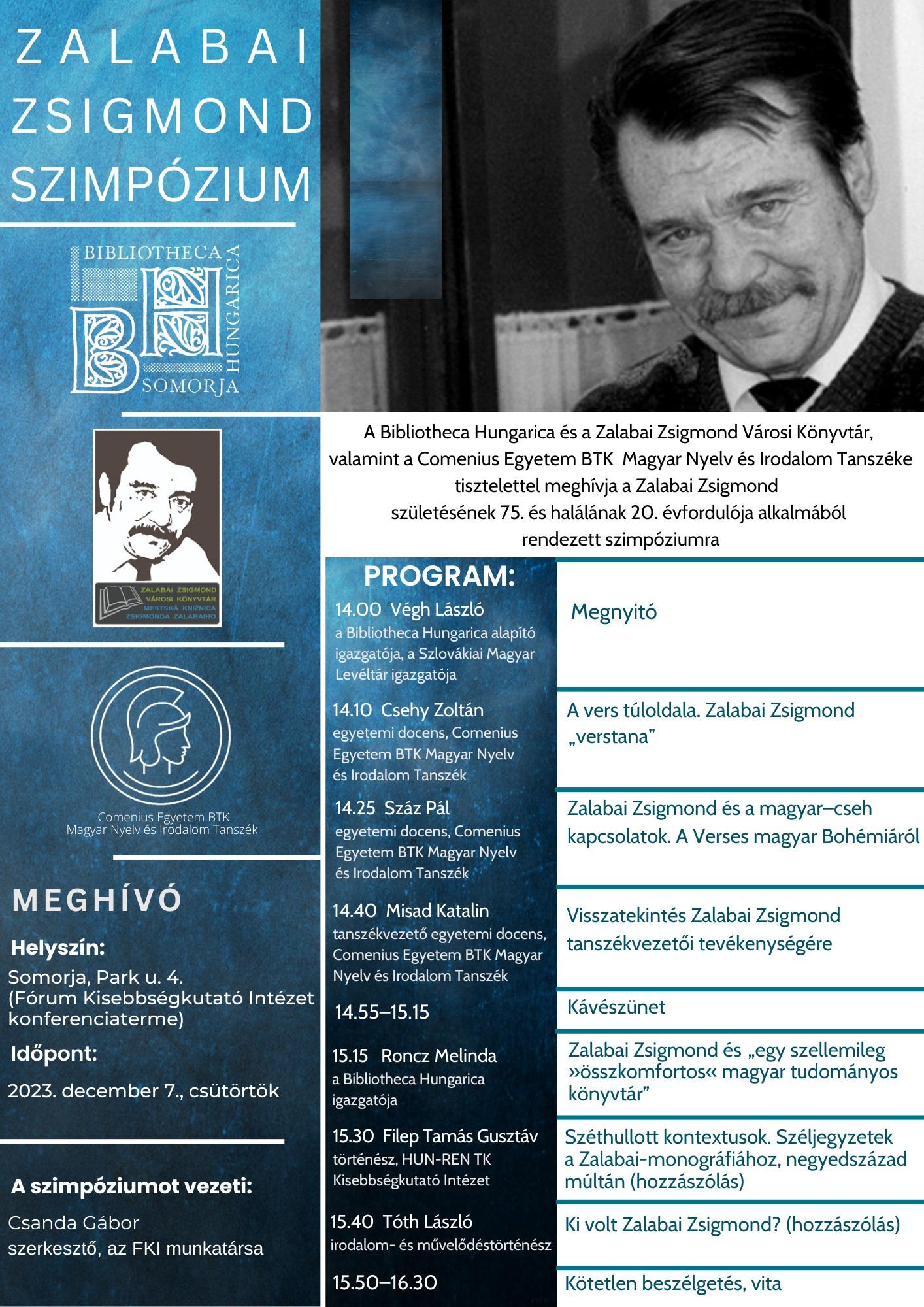 Csanda Gábor moderátorként, Csehy Zoltán és Száz Pál pedig előadóként vesz részt a somorjai Zalabai Zsigmond Szimpóziumon 2023. december 7-én.