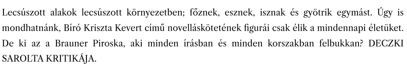 Deczki Sarolta kritikája Bíró Kriszta Kevert című novelláskötetéről a Revizoron jelent meg. Teljes terjedelemben a Revizoronline-on olvasható.