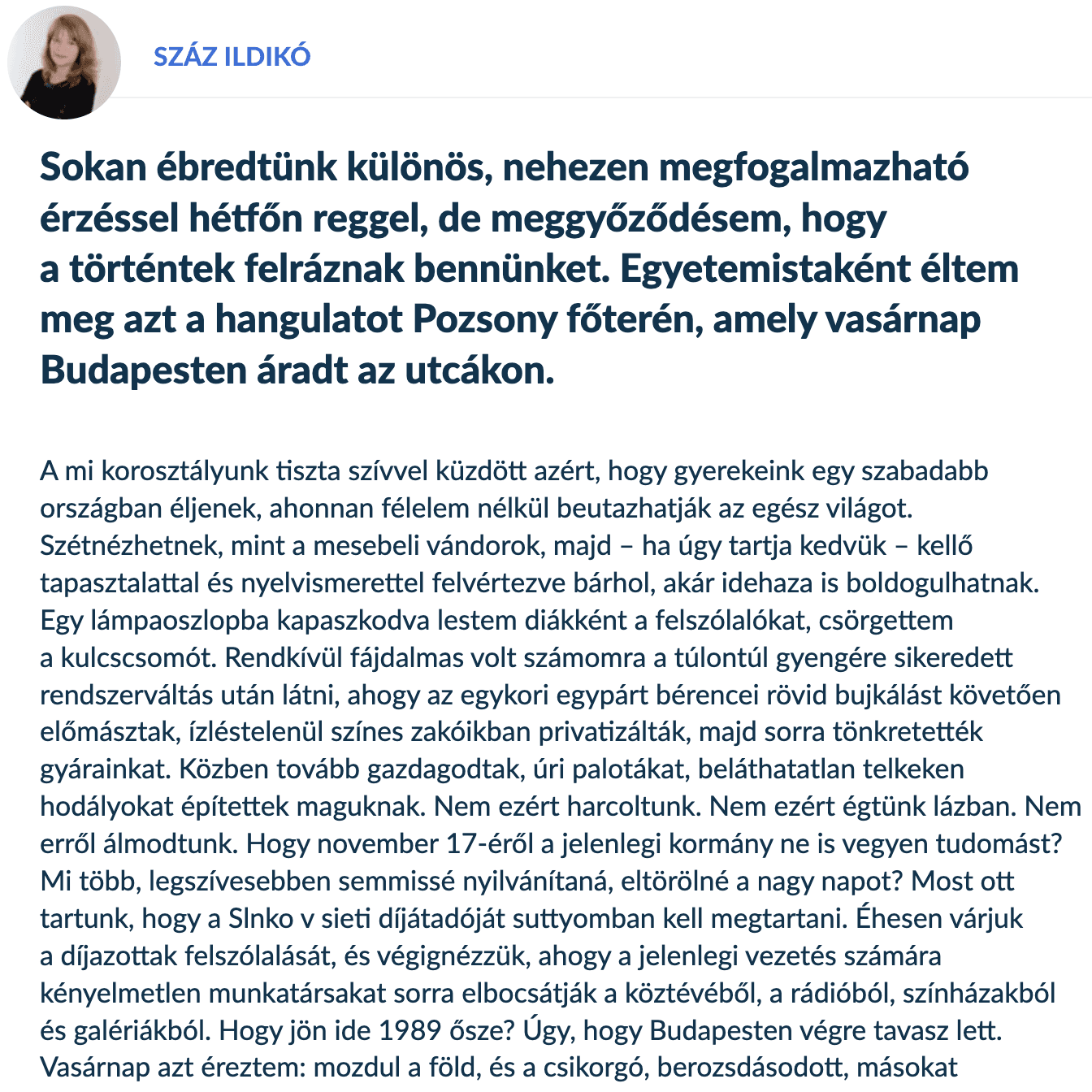 Élni, díjat átadni suttyomban. Száz Ildikó írása az Új Szóban jelent meg. Teljes terjedelemben az Új Szó online felületén olvasható.