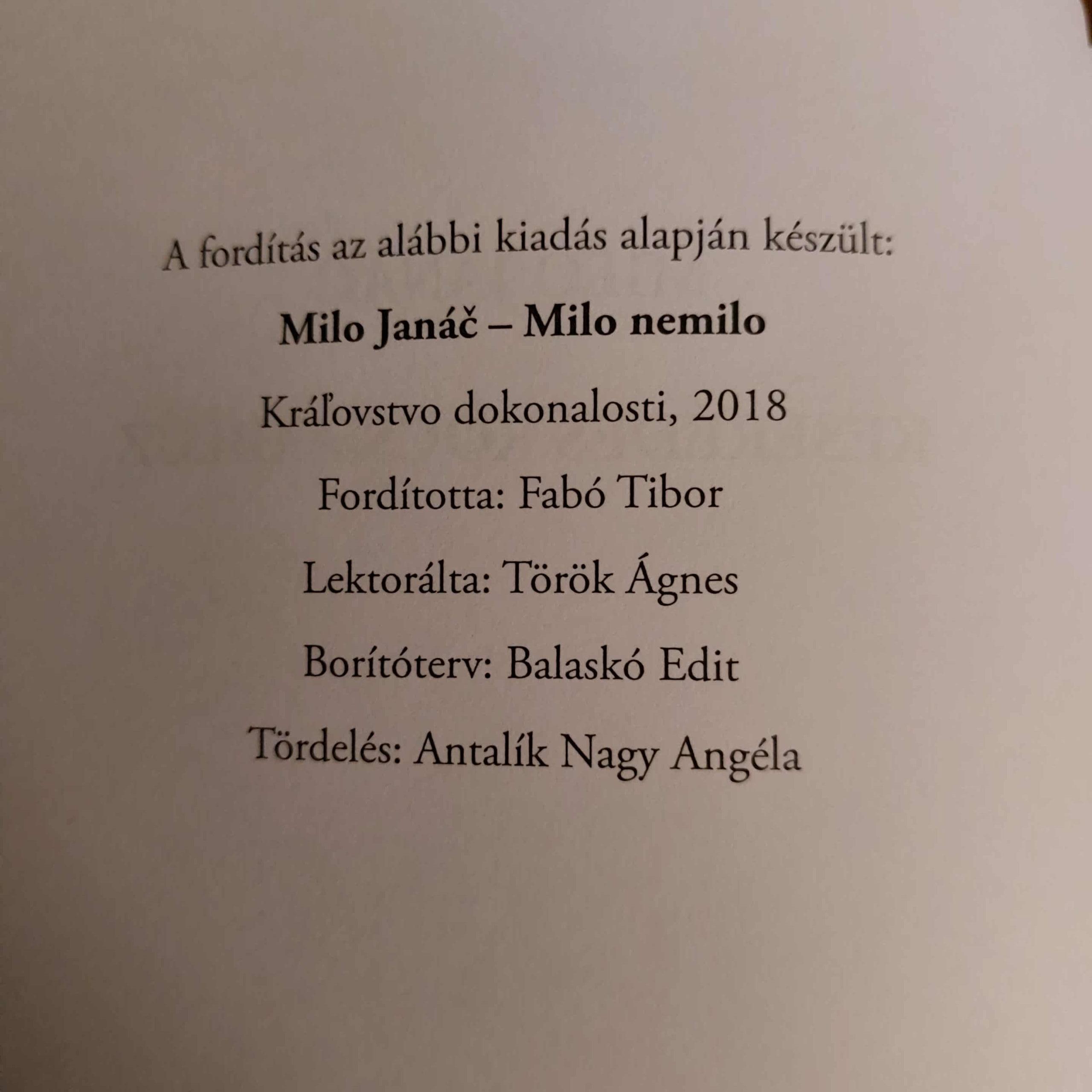 Fabó Tibor fordításában jelent meg Milo Janáč Keserédes kocsmablúz című kötete a Bázis-könyvek sorozat 88. darabjaként.