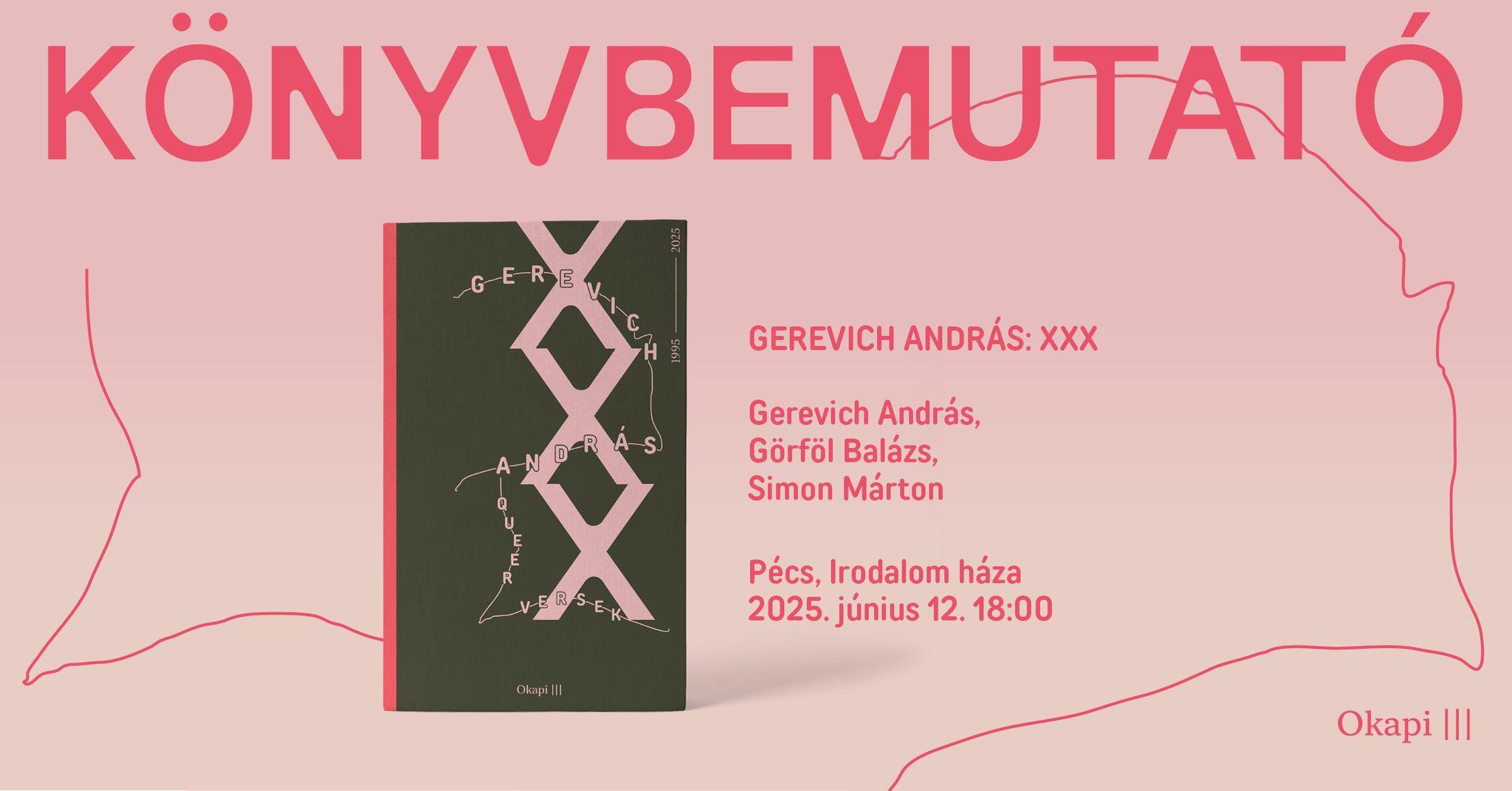 Gerevich Andrással XXX (Okapi Press) című verseskötetéről Simon Márton és Görföl Balázs beszélget Pécsen, az Irodalom házában.