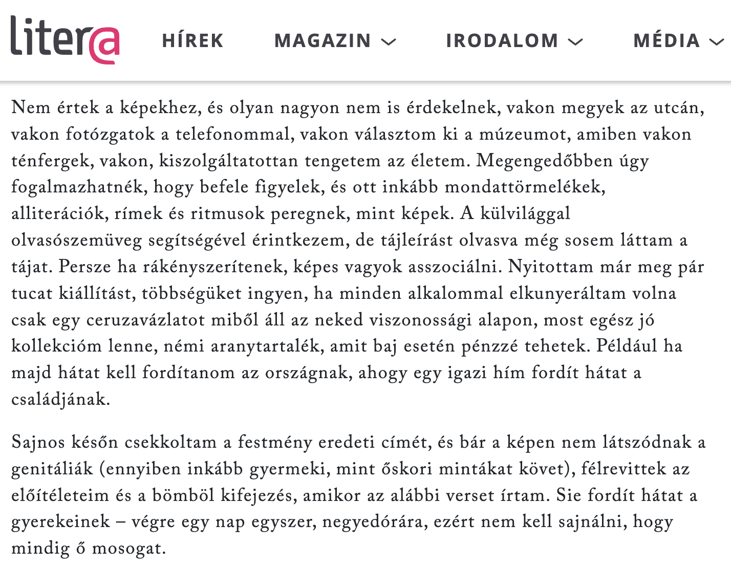 Peer Krisztián írásai szerepelnek a Litera Inspiráció című sorozatában, amelyben az irodalom a vizualitáshoz társul. Teljes terjedelemben a Literán olvasható.