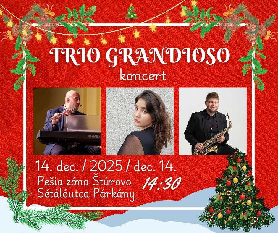A TRIO GRANDIOSO koncertjére kerül sor 2025. december 14-én 14:30-kor a párkányi Sétálóutcán. Janszo Orsolya - ének, Kurina József - zongora, Sándor Norbert - klarinet, szaxofon.