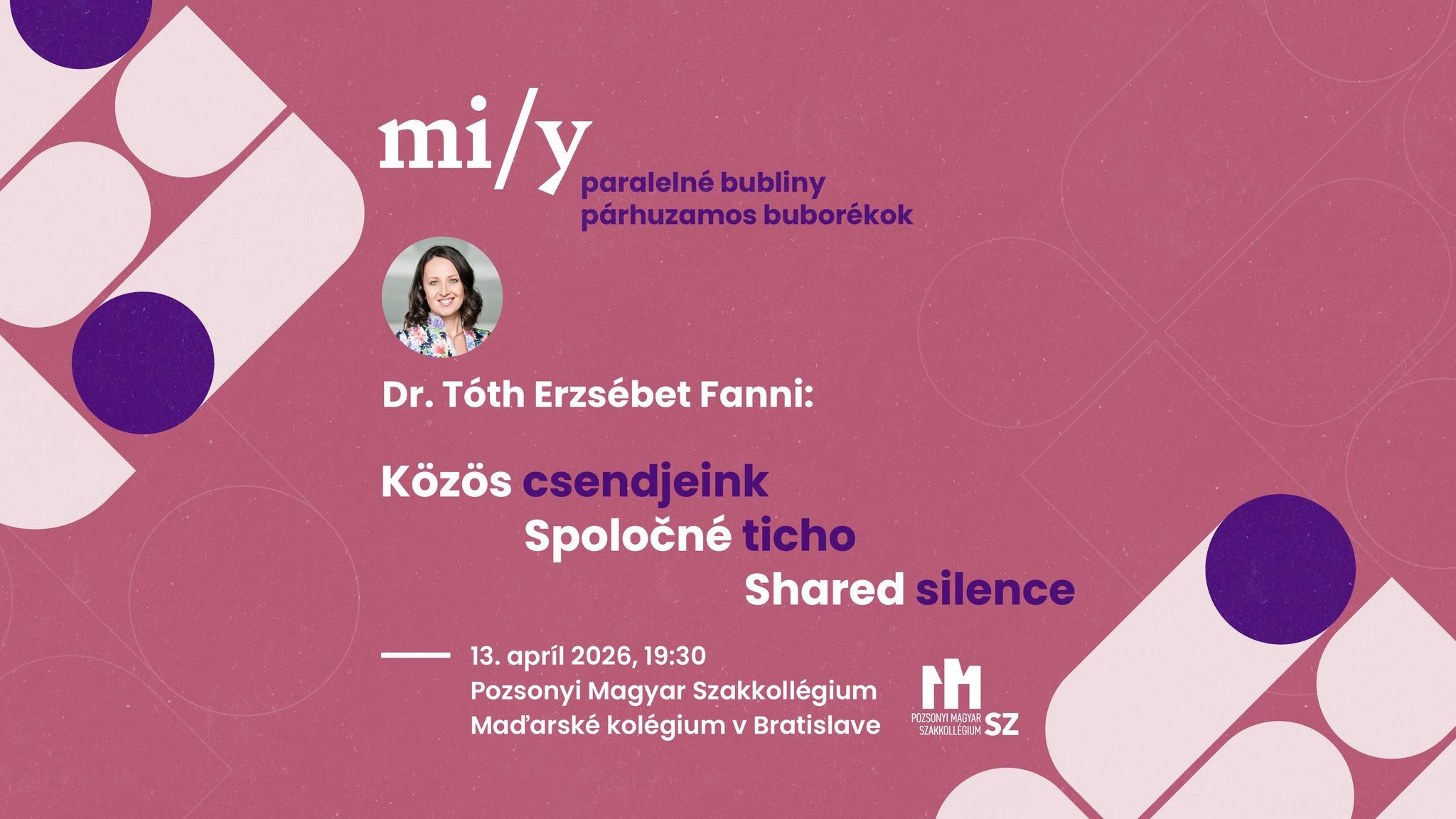 Közös csendjeink: Tóth Erzsébet Fanni tart előadást a kitelepítettek emléknapjához kapcsolódva a Pozsonyi Magyar Szakkollégiumban 2026. április 13-án, hétfőn 19.30-kor. További részletek az esemény Facebook-oldalán olvashatók: