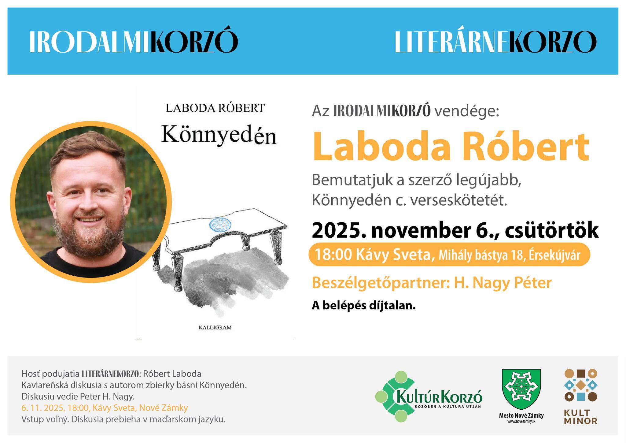 Laboda Róberttel Könnyedén című verseskötetéről H. Nagy Péter beszélget Érsekújváron 2025. november 6-án 18.00-kor. Részletek: