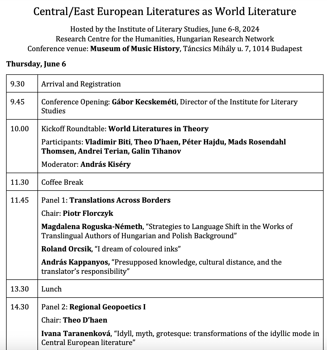 Magdalena Roguska-Németh és Magdalena Garbacik-Balakowicz is előad a BTK Irodalomtudományi Intézet Irodalomelméleti Osztálya és az MTA–BTK Lendület Magyar Irodalom Politikai Gazdaságtana Kutatócsoport Central/East European Literature as World Literature című nemzetközi tudományos konferenciáján, amelyre 2024. június 6. és 8. között kerül sor. A rendezvény első két napjának helyszíne a BTK Zenetudományi Intézet (1014 Budapest, Táncsics Mihály u. 7.), a harmadik napé a Corvinus Egyetem Gellért Campusa (1118 Budapest, Ménesi út 5.). További információk az ITI BTK honlapján.
