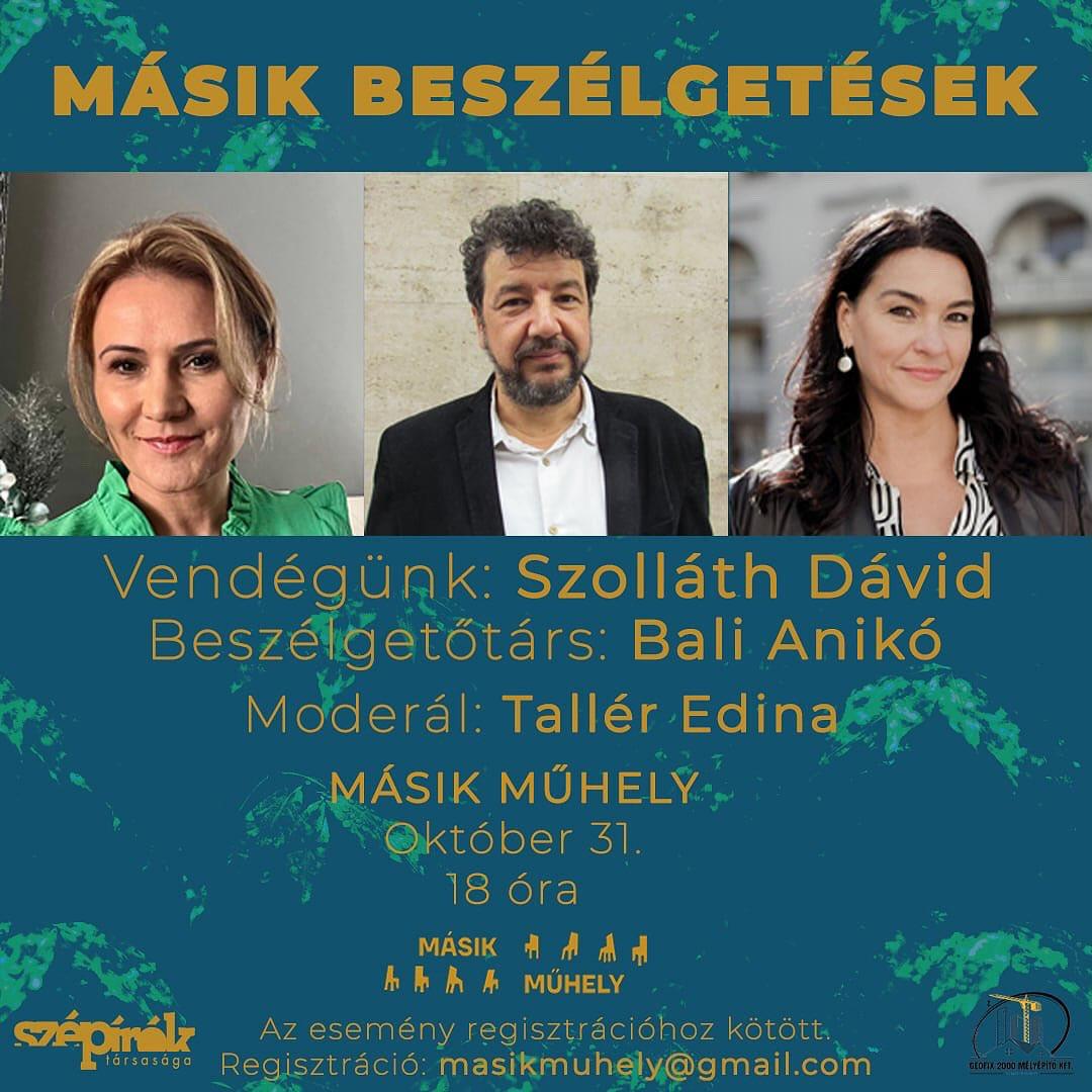 Szolláth Dáviddal Bali Anikó és Tallér Edina beszélget a Másik Beszélgetések című sorozat részeként 2025. október 31-én 18:00-kor. Helyszín: Másik Műhely (Budapest, Bartók Béla út 113.) Az eseményt a Szépírók Társasága támogatja. A beszélgetést követően 19.00-tól Szolláth Dáviddal szövegműhelyre kerül sor, amely a Másik Műhely bérleteivel látogatható. A részvétel mindkét program esetében regisztrációhoz kötött: masikmuhely@gmail.com. Bővebb információk az esemény Facebook-oldalán olvashatók.