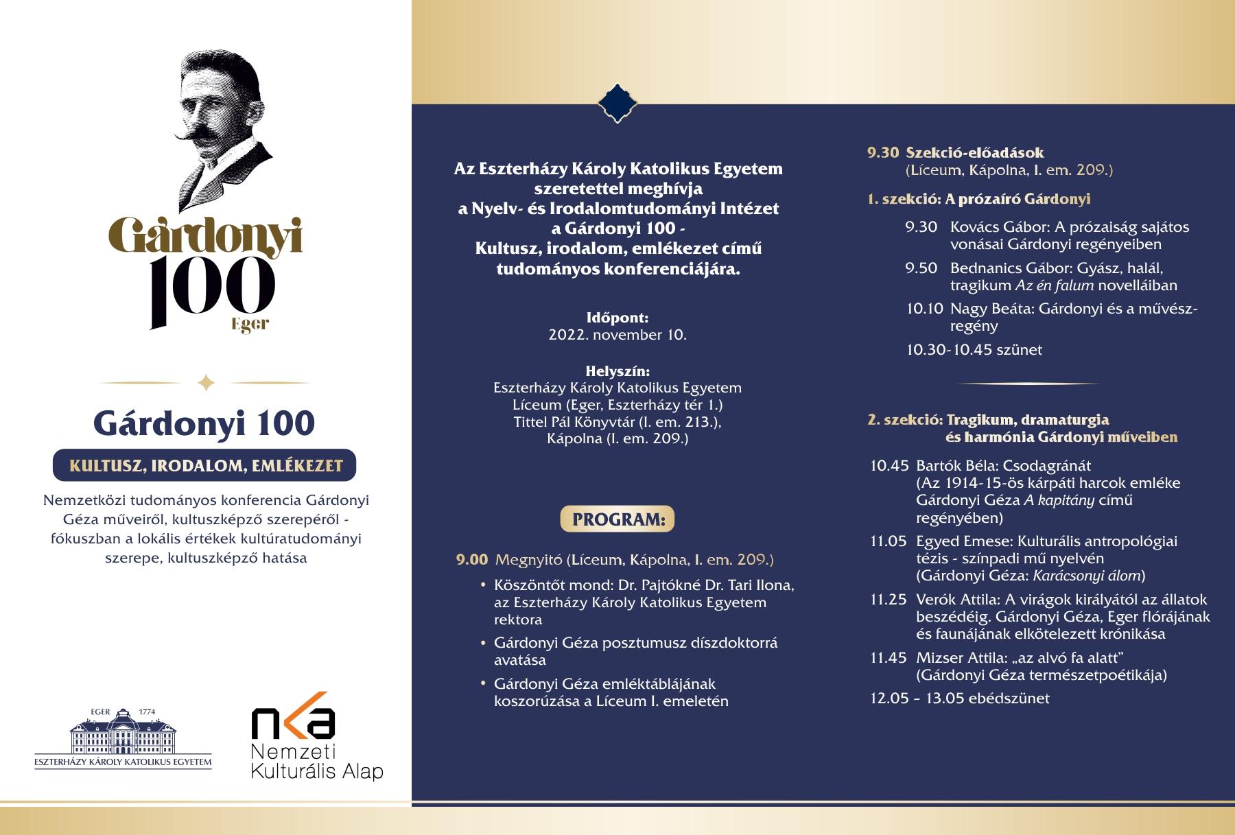 Mizser Attila és Mizser Nagy Csilla ad elő az egri Eszterházy Károly Katolikus Egyetem Gárdonyi Géza-konferenciáján ma, 2022. november 10-én. Mizser Attila “az alvó fa alatt” (Gárdonyi Géza természetpoétikája) című előadására 11.45-től, Mizser Nagy Csilla: A háború tere (Kálnoky László, Nemes Nagy Ágnes, Szabó Magda) című előadására 14.30-kor kerül sor.