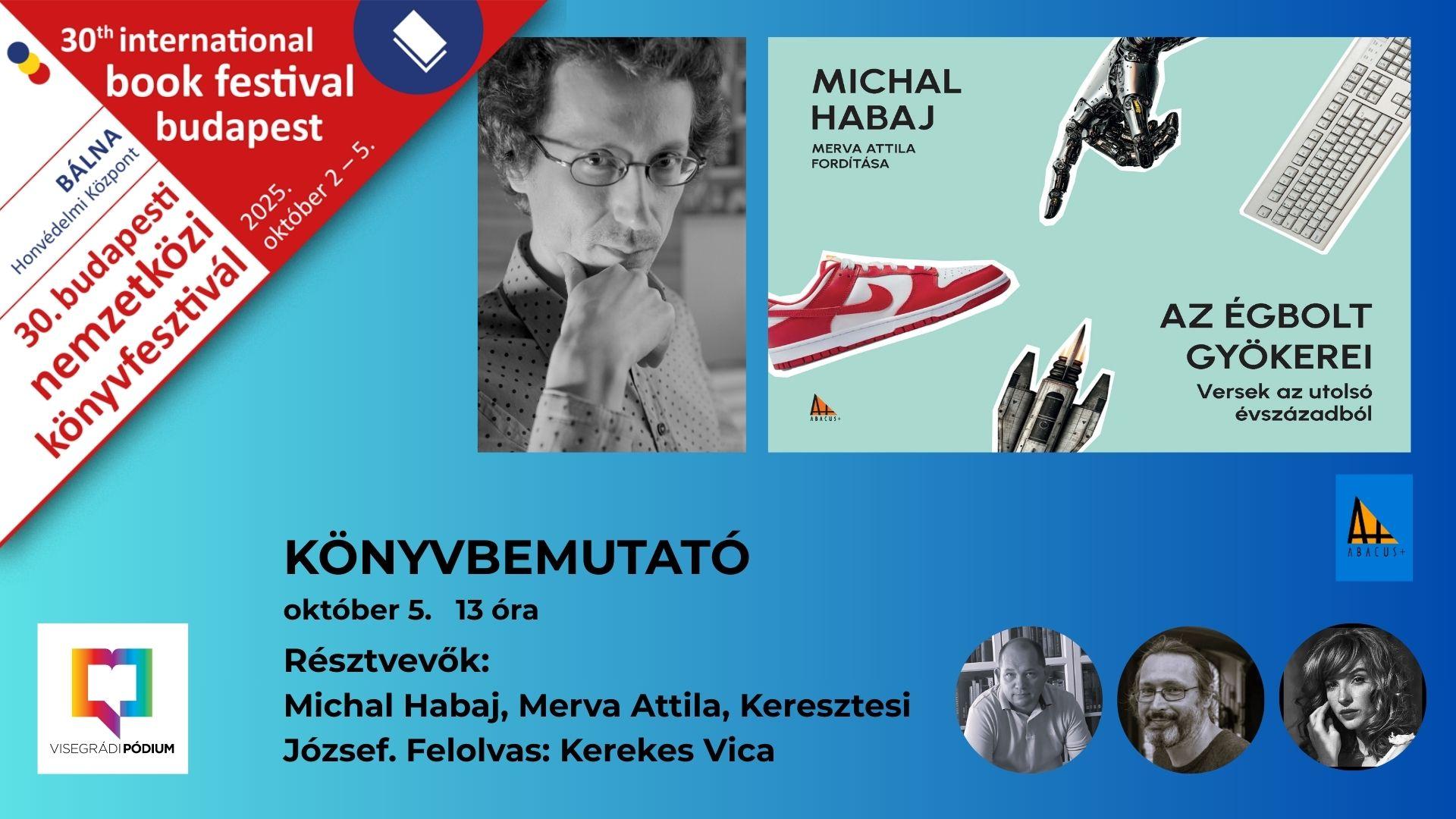 Michal Habaj (1974) kiváló szlovák költő, író, irodalomtudós, számos verseskötet szerzője, versei az európai nyelvek többségén olvashatóak, a Caput Mortuum és Michal Habaj című kötetei magyar nyelven is megjelentek 2019-ben és 2020-ban Merva Attila fordításában.