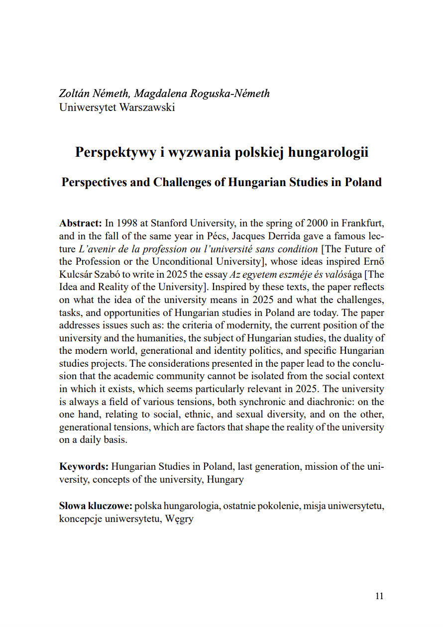 Németh Zoltán és Magdalena Roguska-Németh közös lengyel nyelvű tanulmánya a lengyel hungarológia kihívásairól a Polska a Ugrofinowie I. Spotkanie kultur című konferenciakötetben jelent meg. A kötet megrendelhető, illetve szabadon letölthető: https://wydawnictworys.com/polska-a-ugrofinowie-t-i-spotkanie-kultur-red-ewelina-bator-anna-buncler-szymon-pawlas.html, valamint: polska-a-ugrofinowie-tom-i-spotkanie-kultur-redakcja-ewelina-bator-anna-buncler-szymon-pawlas-edycja-online.pdf (2.7 MB)