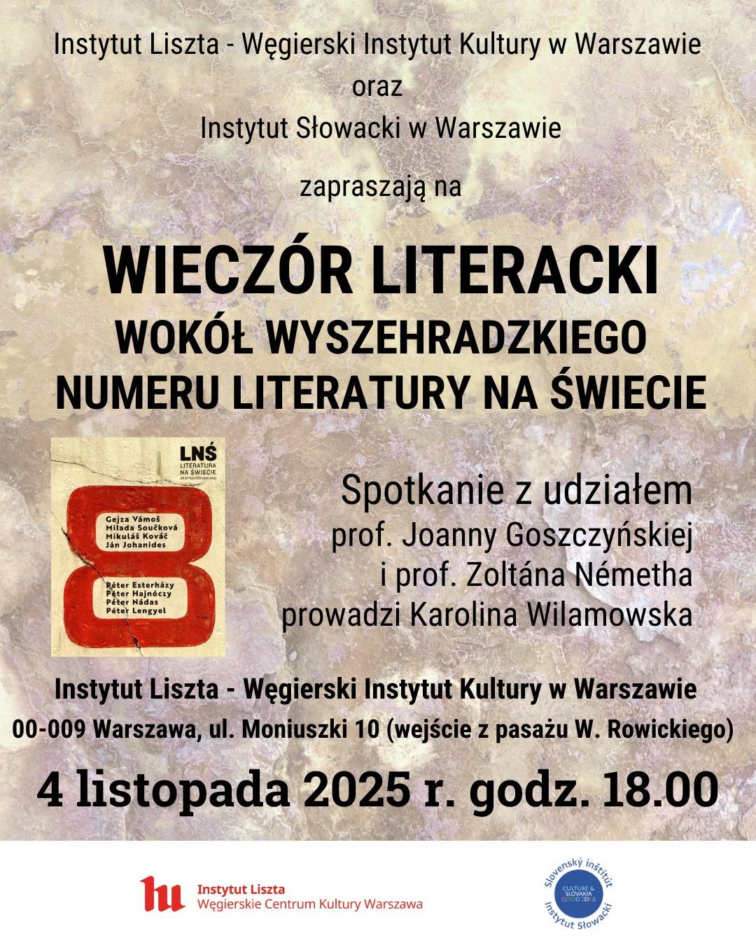 Németh Zoltánnal és Joanna Goszczyńskával a Literatura na Świecie lengyel világirodalmi folyóirat V4-es, magyar, szlovák és cseh számáról a lap szerkesztője, Karolina Wilamowska beszélget a varsói Liszt Intézetben (ulica Stanisława Moniuszki 10) 2025. november 4-én, kedden 18.00-kor. További információk az esemény Facebook-oldalán olvashatók.