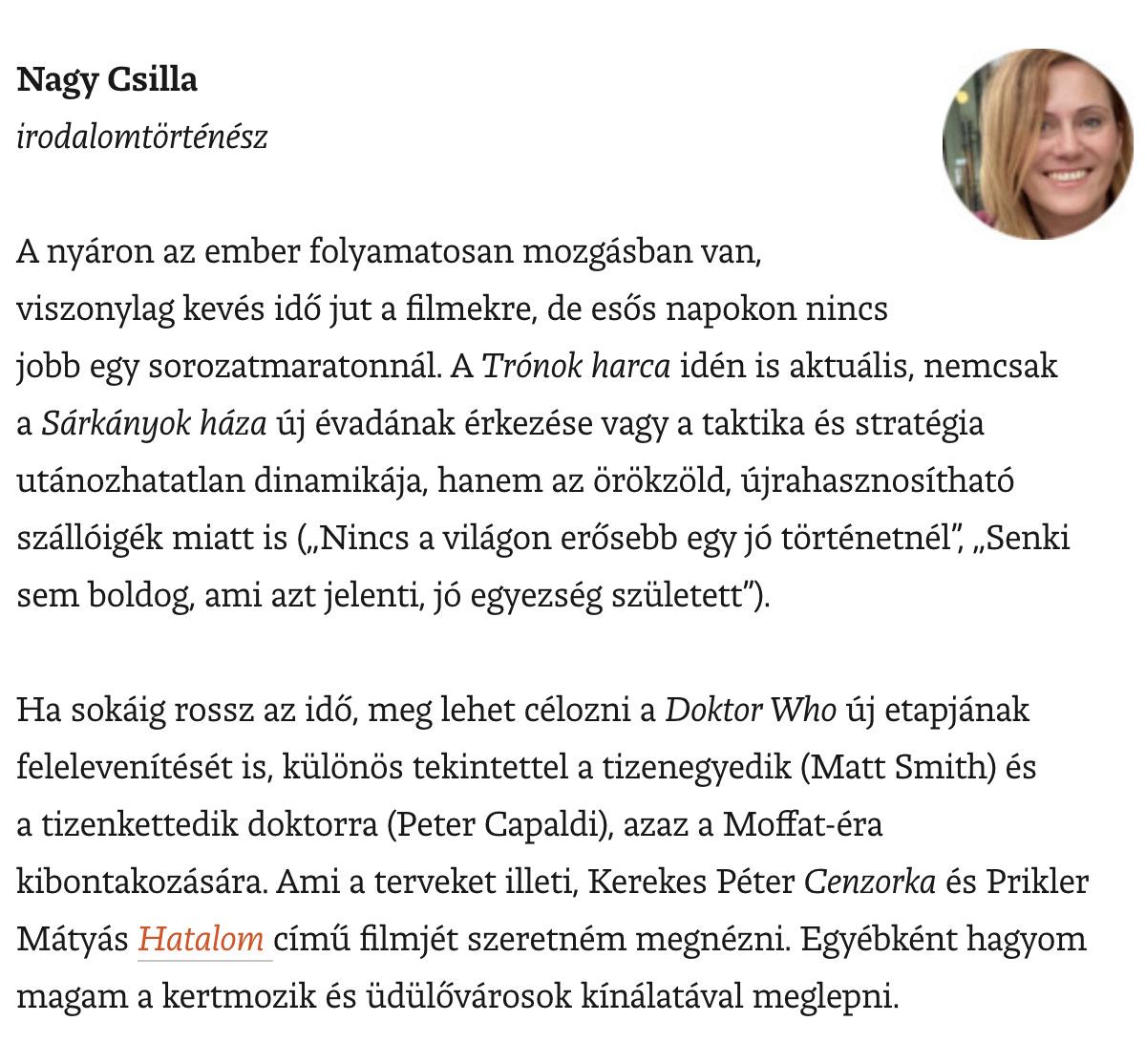 Izsák-Boda Bianka, Juhász Katalin, Lukács Zsolt és Nagy Csilla, a Bázis tagjai is válaszoltak a Napunk körkérdésére: "milyen filmeket és sorozatokat néznének nyaralásuk alatt, illetve miket ajánlanak másoknak." Az ankét a Napunk honlapján olvasható teljes terjedelemben.