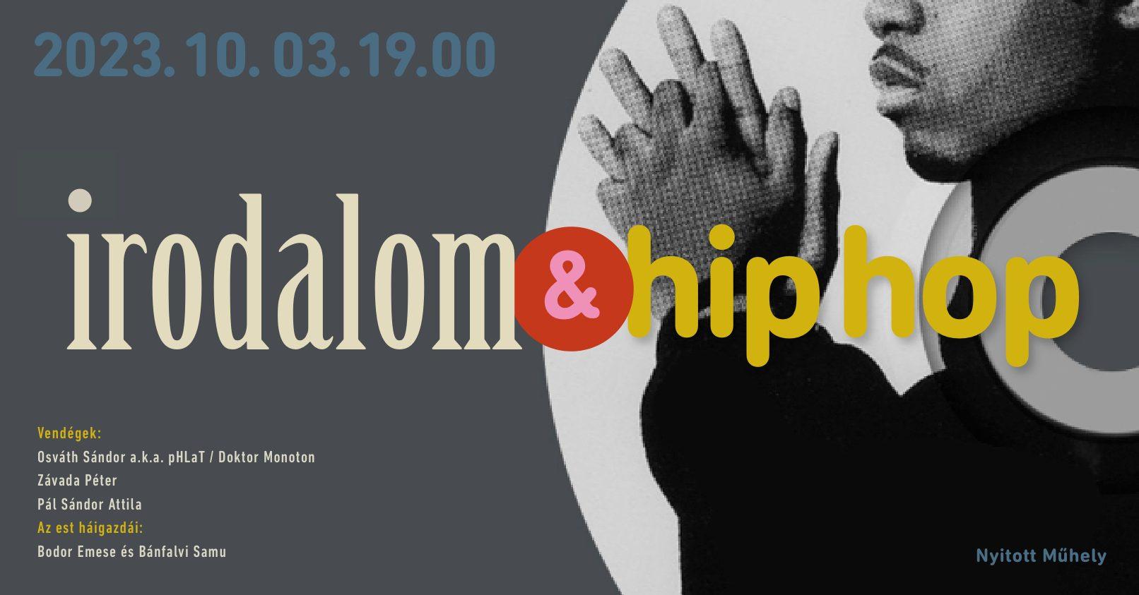 Pál Sándor Attila, Osváth Sándor és Závada Péter beszélget a hip-hop és az irodalom kapcsolatáról a Nyitott Műhelyben, a Késelés villával beszélgetősorozat részeként. Az est házigazdái Bodor Emese és Bánfalvi Samu. Időpont: 2023. október 3., 19.00. Helyszín: Nyitott Műhely, Budapest, Ráth György u. 4. Bővebb információk az esemény Facebook-oldalán.