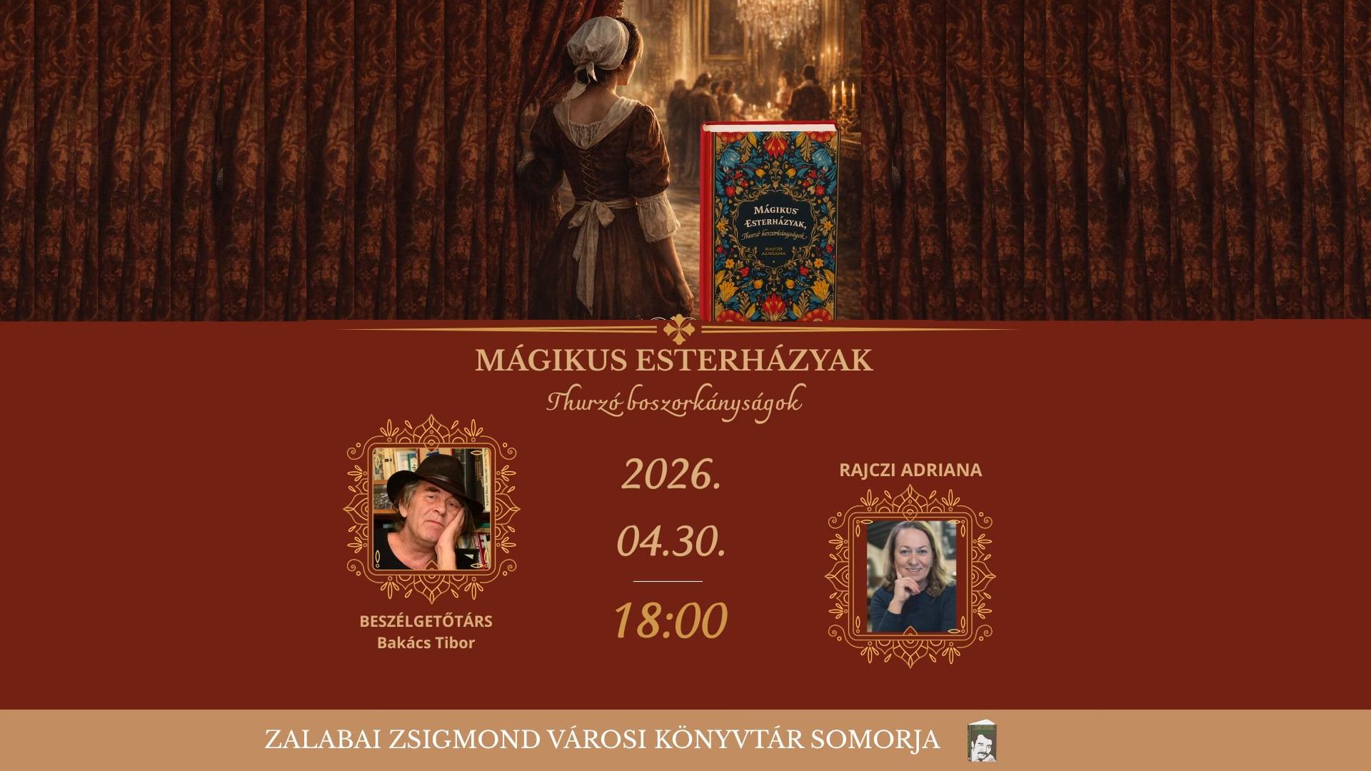 Rajczi Adrianával Mágikus Esterházyak, Thurzó boszorkányságok című könyvéről Bakács Tibor Settenkedő beszélget Somorján, a Zalabai Zsigmond Városi Könyvtárban 2026. április 30-án 18.00-kor! Bővebb információk az esemény Facebook-oldalán olvashatók: