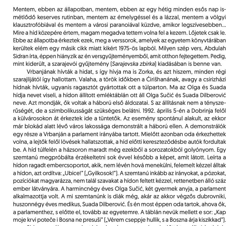 Száz Pál A hidak könyve (Vrbanja, Szarajevó) c. esszéregényrészlete az Alföldben