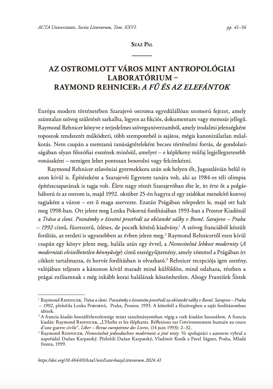 Száz Pál tanulmánya is olvasható a Háború és béke a kortárs világirodalomban című tanulmánykötetben, amely Kiss Noémi és Körömi Gabriella szerkesztésében jelent meg az Eszterházy Károly Katolikus Egyetem Líceum Kiadójának gondozásában.