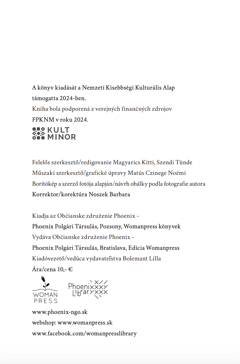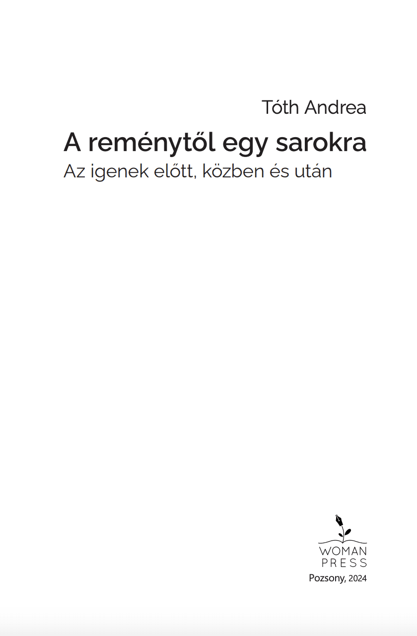 Tóth Andrea A reménytől egy sarokra című regénye megjelent a Womanpress Kiadó gondozásában. Kiadóvezető: Bolemant Lilla. Felelős szerkesztő: Magyarics Kitti, Szendi Tünde. Korrektor: Noszek Barbara. Borítóterv, grafikai elrendezés és nyomdai előkészítés: Matús Czinege Noémi.