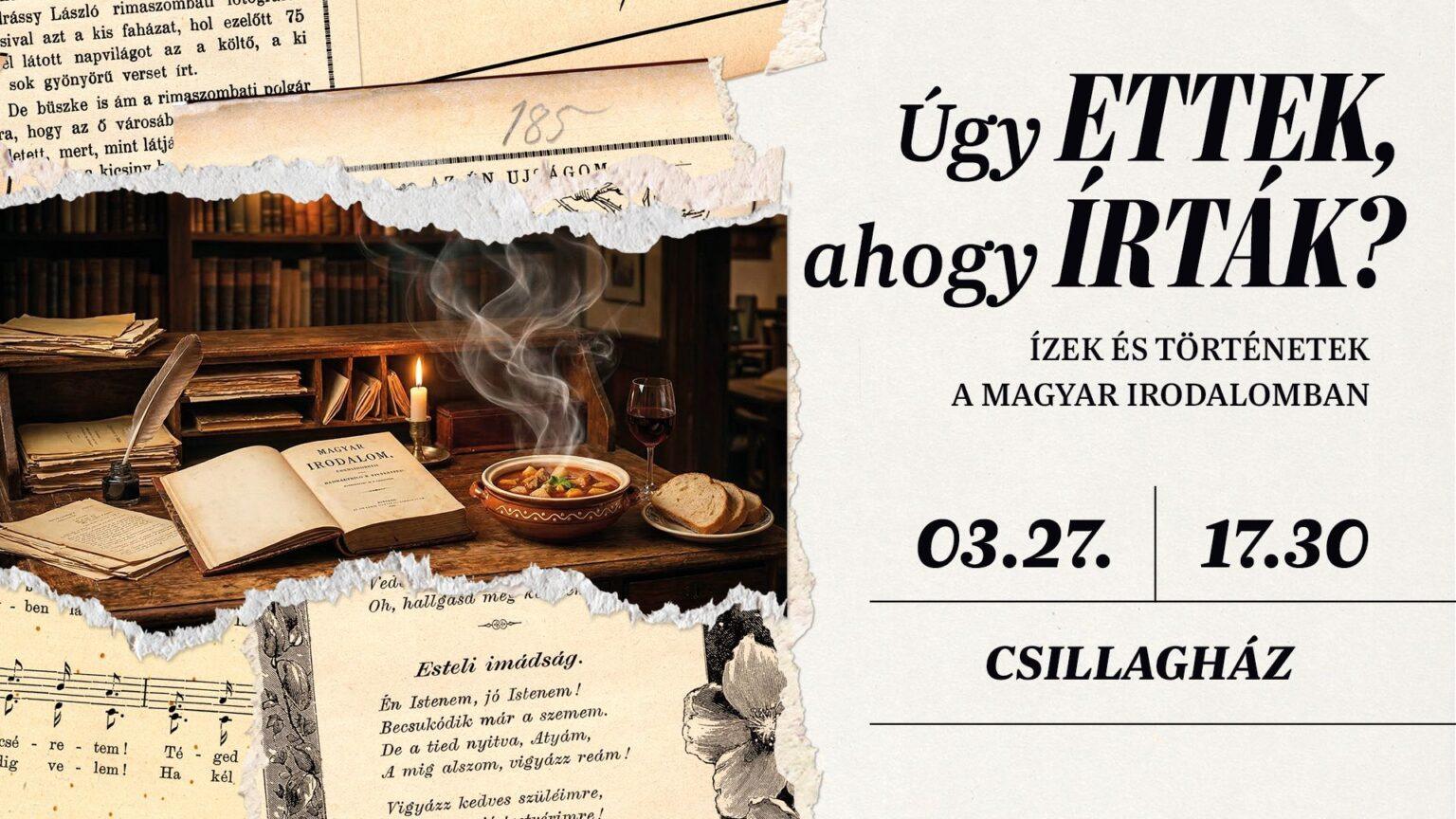 Úgy ettek, ahogy írták? Ízek és történetek a magyar irodalomban címmel Radics Rudolf előadására kerül sor a rimaszombati Csillagházban (Daxner u. 489/36.) 2026. március 26-án 17.30-kor.