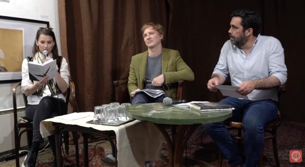 "Tartalom: 00:00 – Felvezető (kétnyelvű) Szabó Zoltántól: a résztvevők bemutatása. Versek és fordításaik felelgetnek egymásnak 09:37 – Az első páros: Mohácsi Árpád és Pedro Assis Coimbra 14:34 – Pedro Assis Coimbra felolvas 15:34 – Mohácsi Árpád felolvas 21:18 – Pedro Assis Coimbra felolvasása 22:38 – Második páros: Petőcz András és João Miguel Henriques 26:27 – João Miguel Henriques felolvas 27:28 – Petőcz András felolvasása 34:27 – João Miguel Henriques felolvasása 36:13 – A harmadik páros: Gyurász Marianna és Frederico Raposo 42:03 – Gyurász Marianna felolvas 43:46 – Frederico Raposo felolvasása 47:06 – Gyurász Marianna felolvas 48:26 – Második kör: Petőcz András és João Miguel Henriques újra 49:48 – João Miguel Henriques felolvasása 50:41 – Petőcz András felolvasása 54:31 – João Miguel Henriques felolvasása 56:43 – Frederico Raposo és Gyurász Marianna újra: Frederico Raposo felolvasása 01:00:15 – Gyurász Marianna felolvasása 01:03:11 – Frederico Raposo l felolvasása 01:05:05 – Mohácsi Árpád és Pedro Assis Coimbra újra 01:06:38 – Pedro Assis Coimbra felolvasása 01:08:39 – Mohácsi Árpád felolvasása 01:12:08 – Pedro Assis Coimbra felolvas 01:13:38 – Az estet Szabó Zoltán zárja le"
