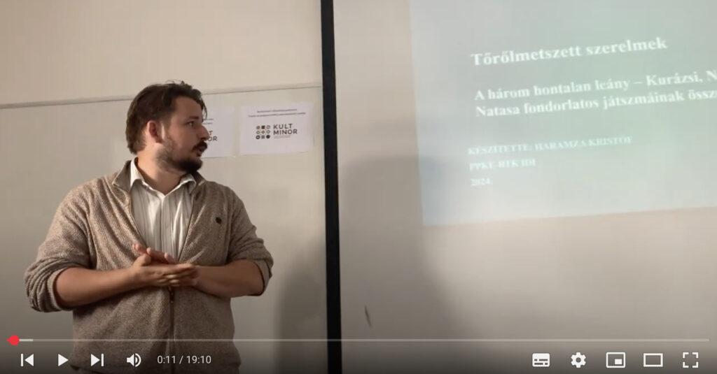 Haramza Kristóf Tőrőlmetszett szerelmek – A három hontalan leány: Kurázsi, Nasztaszja és Natasa fondorlatos játszmáinak összevetése című előadása a nyitrai Transzkulturalizmus és bilingvizmus 7. című Bázis-konferencián (2024. szeptember 9-10.) hangzott el.