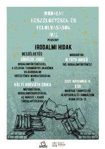 Az Irodalmi Szemle debreceni bemutatójára Németh Zoltán, Nyilas Atilla, Molnár T. Eszter és Juhász Tibor részvételével kerül. Időpont: 2025. december 3. (szerda), 16.30 Helyszín: Kölcsey Art Café (4026 Debrecen, Hunyadi János utca 1–3.) Bővebb információk: https://irodalmiszemle.sk/2025/11/az-irodalmi-szemle-debrecenben-meghivo-2/ Facebook-esemény: https://fb.me/e/3egsJ40Ik
