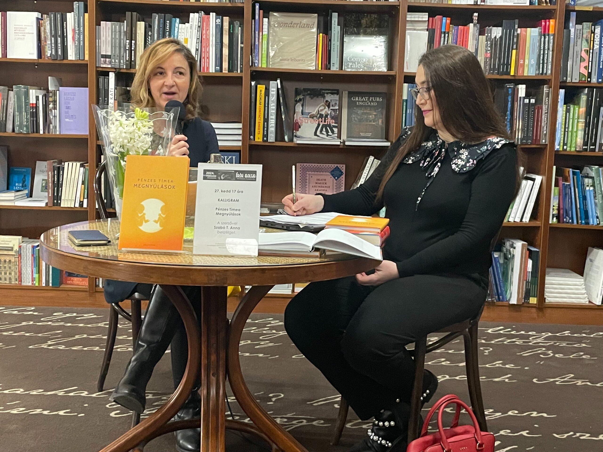 Pénzes Tímeával Megnyúlások című kötetéről Szabó T. Anna beszélgetett az Írók Boltjában. Az eseményről fényképek is készültek. Fotók: Karafiáth Orsolya, Vályi Horváth Erika és Kádár István.