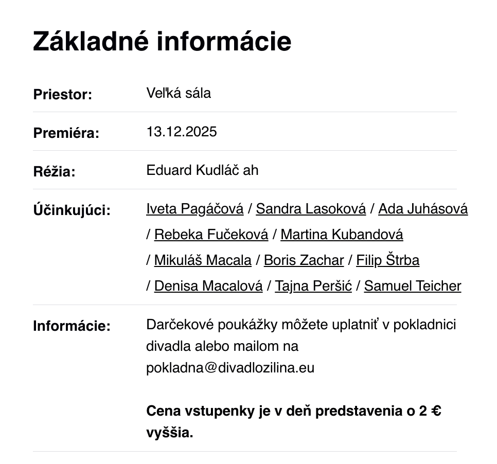 Hra Miklósa Forgácsa Vizičlovek (vodný ember) bude uvedená v Mestskom divadle Žilina 13. decembra 2025. Podrobnosti: https://divadlozilina.eu/podujatia/viziclovek-vodny-ember-3/.