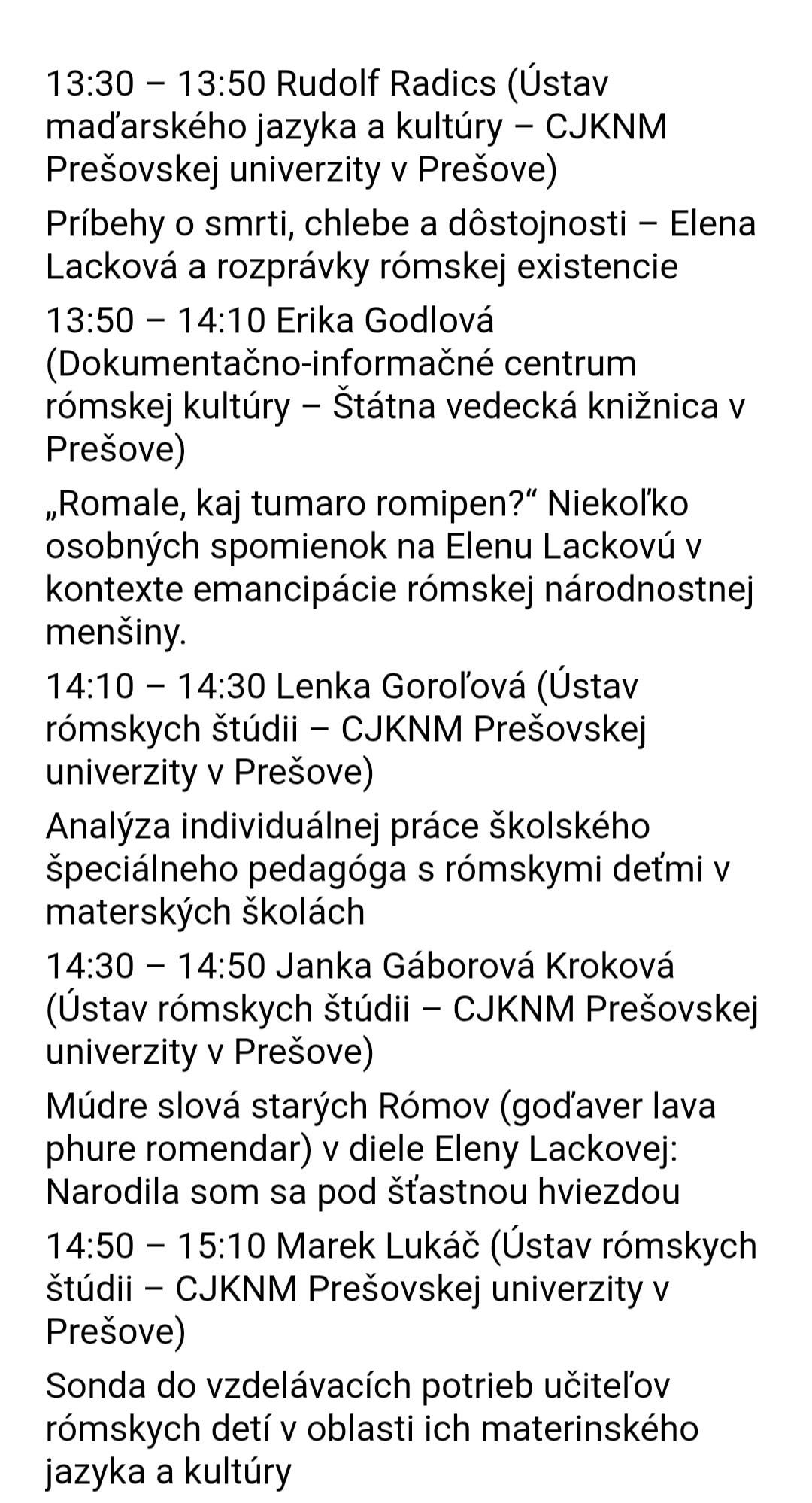 29. októbra 2025 Rudolf Radics vystúpi na vedeckej konferencii Elena Lacková a jej prínos, ktorú organizuje Ústav rómskych štúdií Prešovskej univerzity. Názov prezentácie: Príbehy o smrti, chlebe a dôstojnosti – Elena Lacková a rozprávky rómskej existencie.