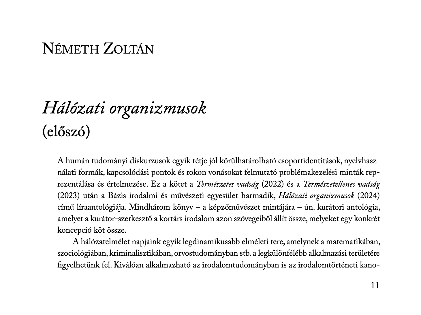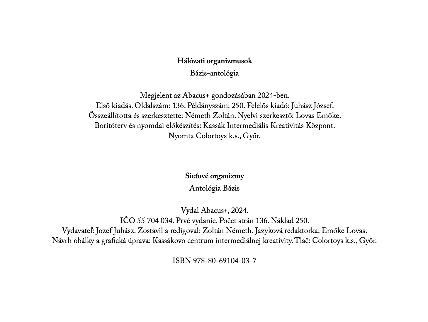 Az Abacus+ Kiadó gondozásában megjelent a Hálózati organizmusok, a Bázis 3. líraantológiája a Bázis-könyvek sorozat 50. darabjaként! Felelős kiadó: Juhász József. Összeállította és szerkesztette: Németh Zoltán. Nyelvi szerkesztő: Lovas Emőke. Megrendelhető az Abacus+ Kiadó Facebook-oldalán: https://www.facebook.com/profile.php?id=61566525534637.