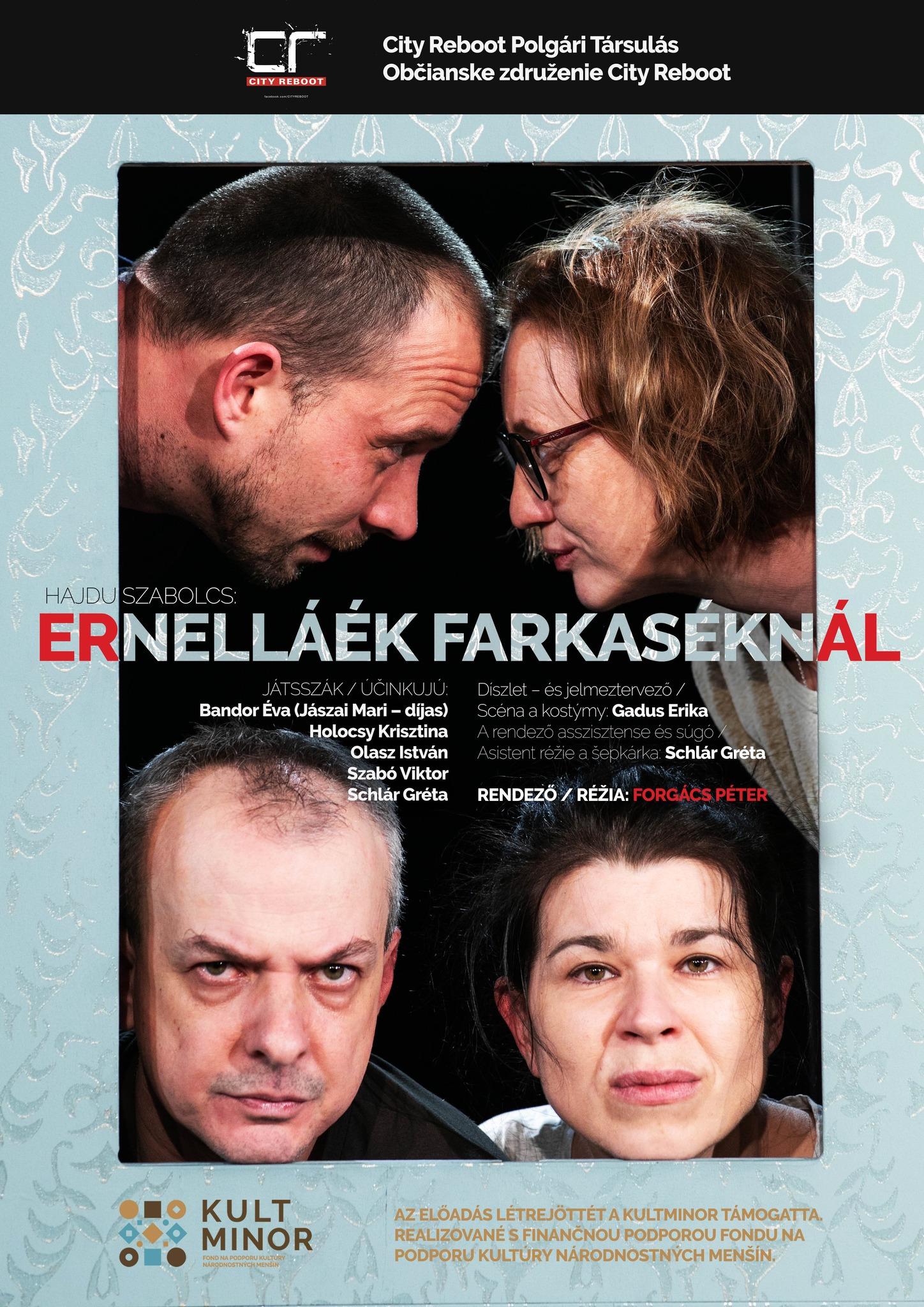 Bandor Évával mutatják be Hajdu Szabolcs Ernelláék Farkaséknél című darabját az Ifjú Szivek székházában (Ifjú Szivek Táncszínház - Tanečné Divadlo) Pozsonyban 2024. szeptember 16-án 19.00-tól. Jegyek: www.ticketportal.sk/event/Ernellaek-Farkaseknal.