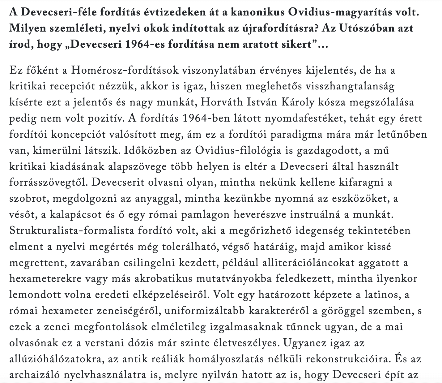 Csehy Zoltánnal Ovidius Átváltozásokjának fordításáról Jánossy Lajos beszélgetett a Literán. Az interjú teljes terjedelemben a Literán olvasható.