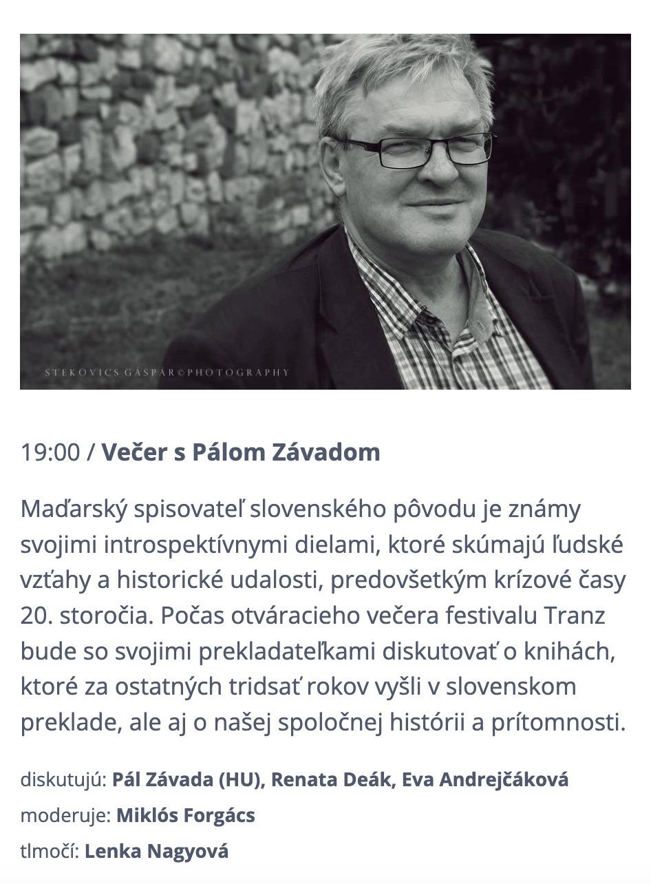 Deák Renáta, Eva Andrejčáková, Forgács Miklós, Lenka Nagyová és Gabriela Magová is szerepel a Tranz műfordító fesztiválon Besztercebányán 2025. május 1-jén és május 3-án. Részletes információk: https://www.tranz.sk/.