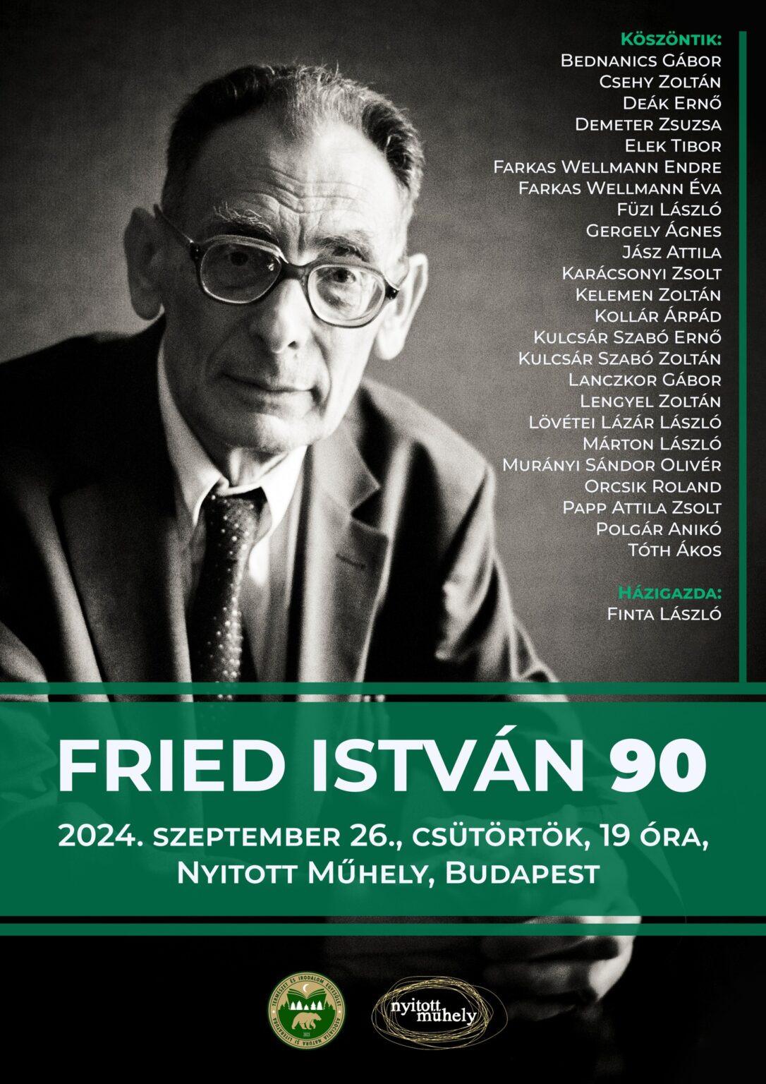 Fried Istvánt köszöntik 90. születésnapján a budapesti Nyitott Műhelyben pályatársai 2024. szeptember 26-án 19.00-kor. Bővebb információk a Nyitott Műhely honlapján olvashatók.
